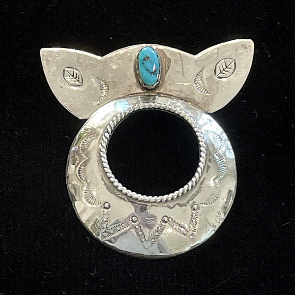 W Chee Navajo Sterling Silver Turquoise Brooch 12 Grams