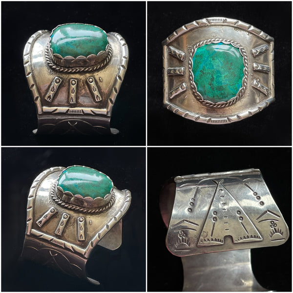 VTG Sterling Fred Harvey Era Native American Bracelet Stamped Tee Pees Signed MB