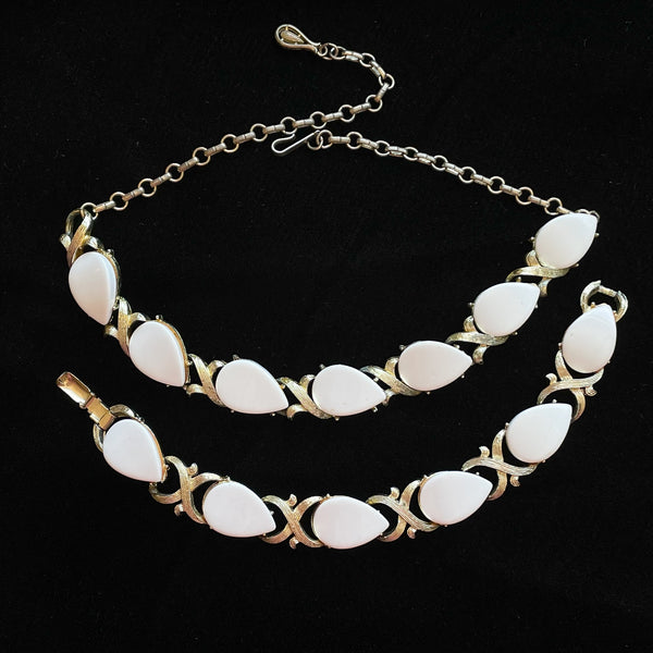White Lucite/Thermoset Demi Parure Bracelet Necklace Set, MCM Costume Jewelry