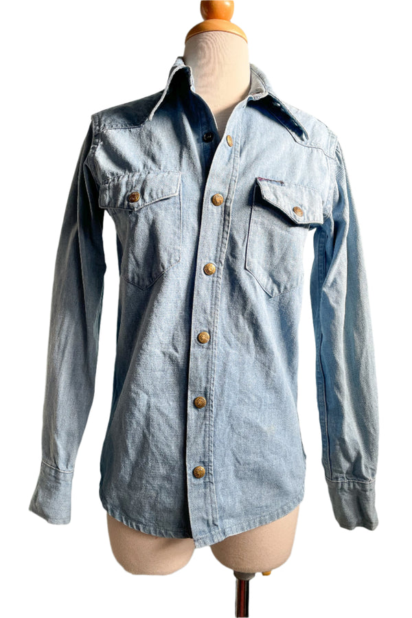 Vintage 60s Landlubber Denim Shirt, Kids 14, Womens S/XS