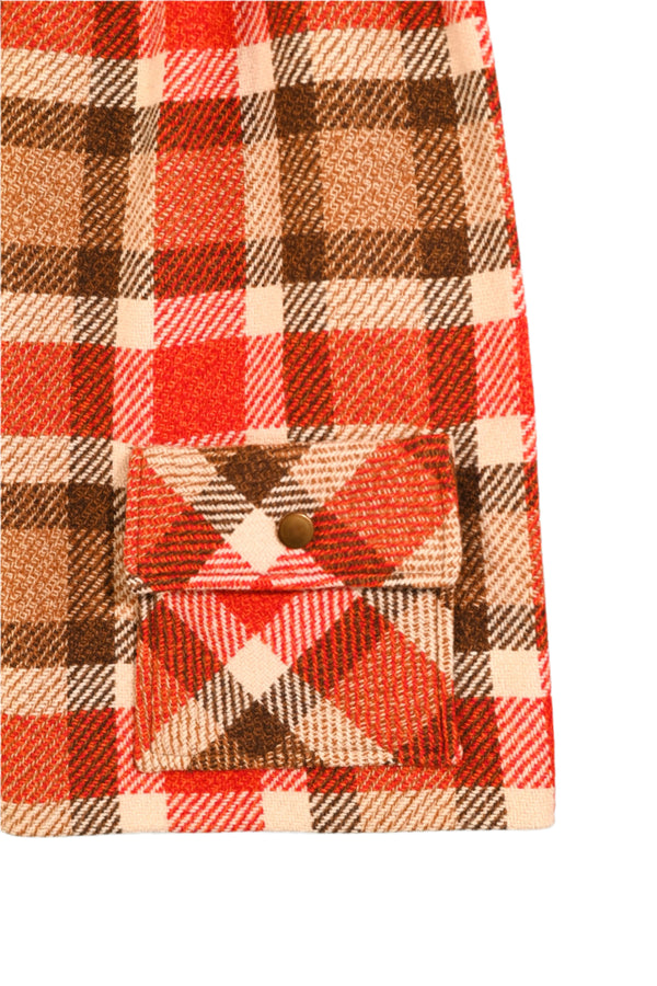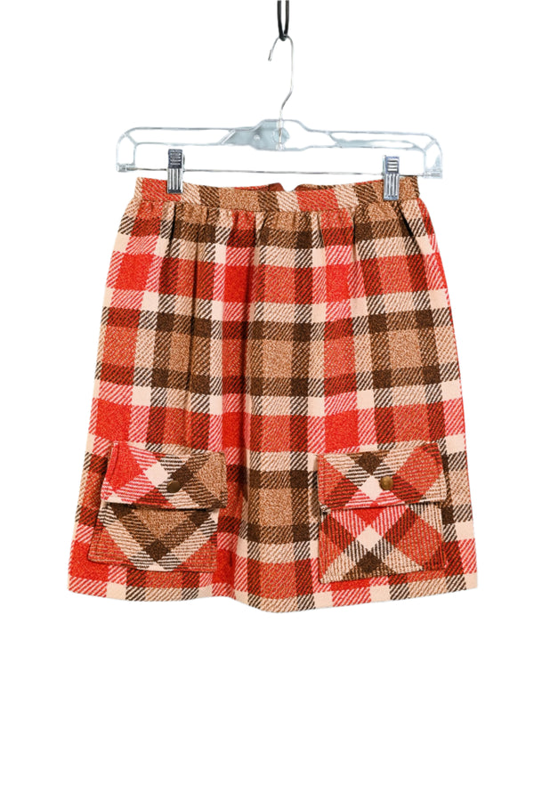 Vintage 60s Orange Brown Plaid Mini Skirt w/Pockets, 22 In Waist XS