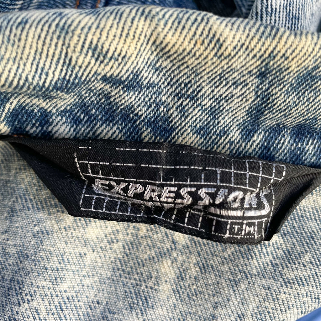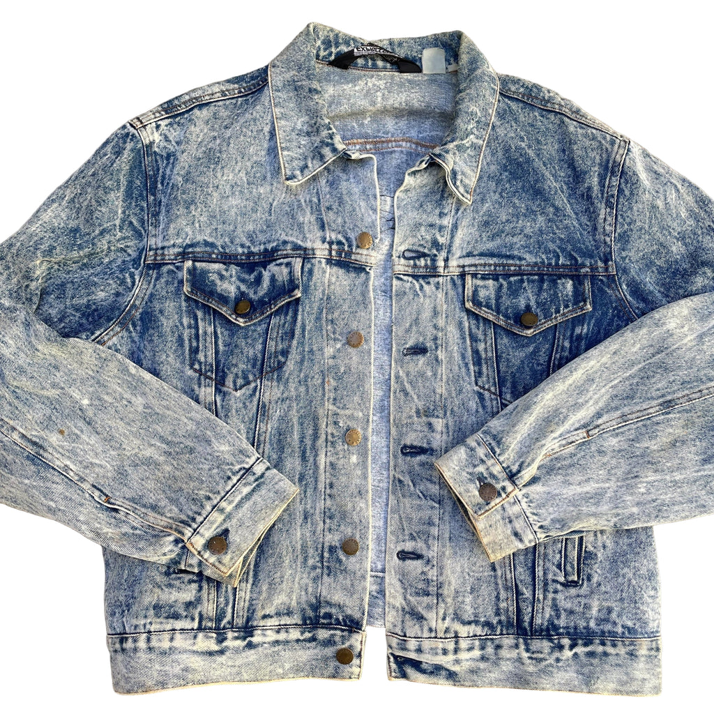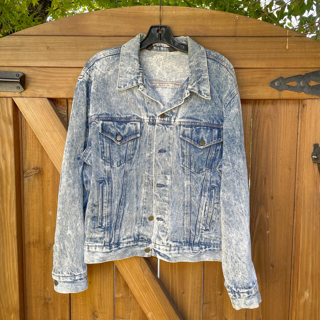 Vintage 80s acid washed denim jacket with Grateful Dead patches on the back.