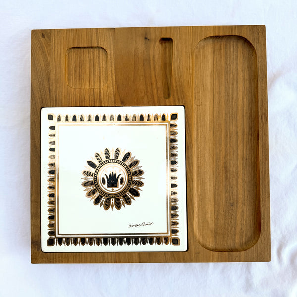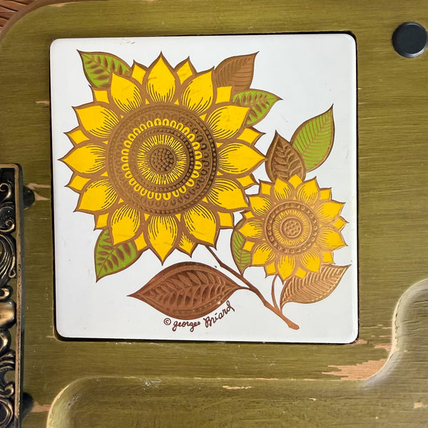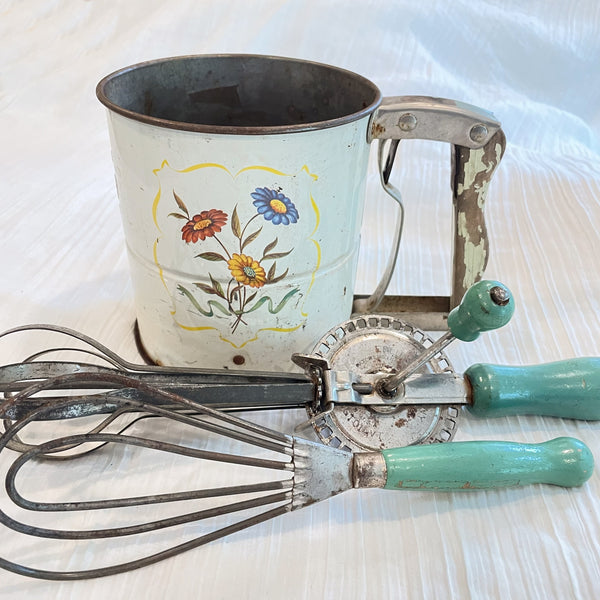 Vintage decorative pieces including pottery, trays, textiles, quilts and more.