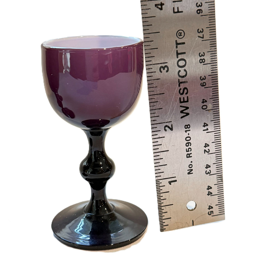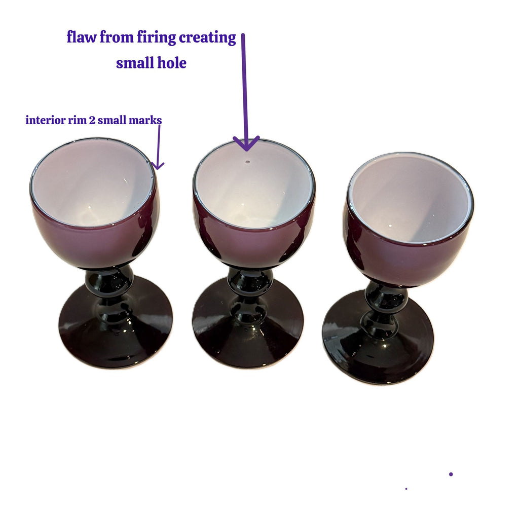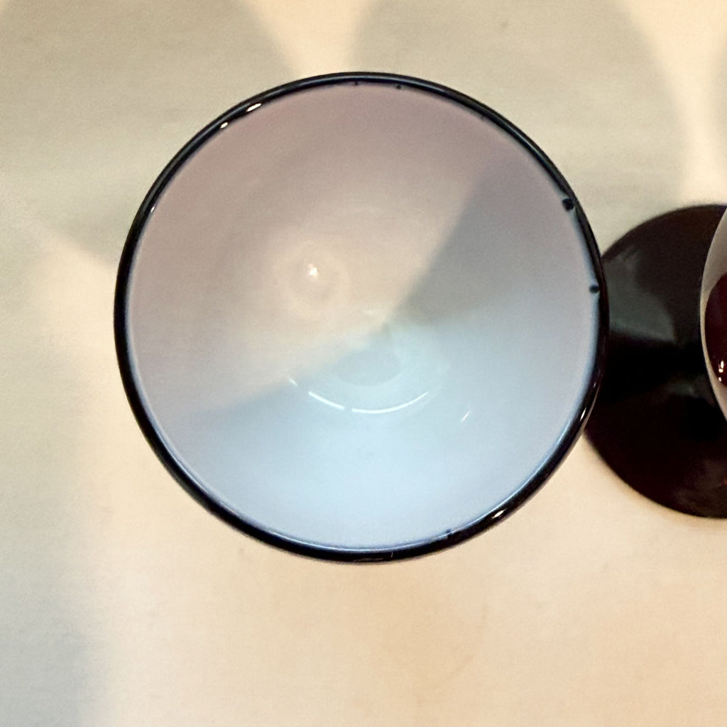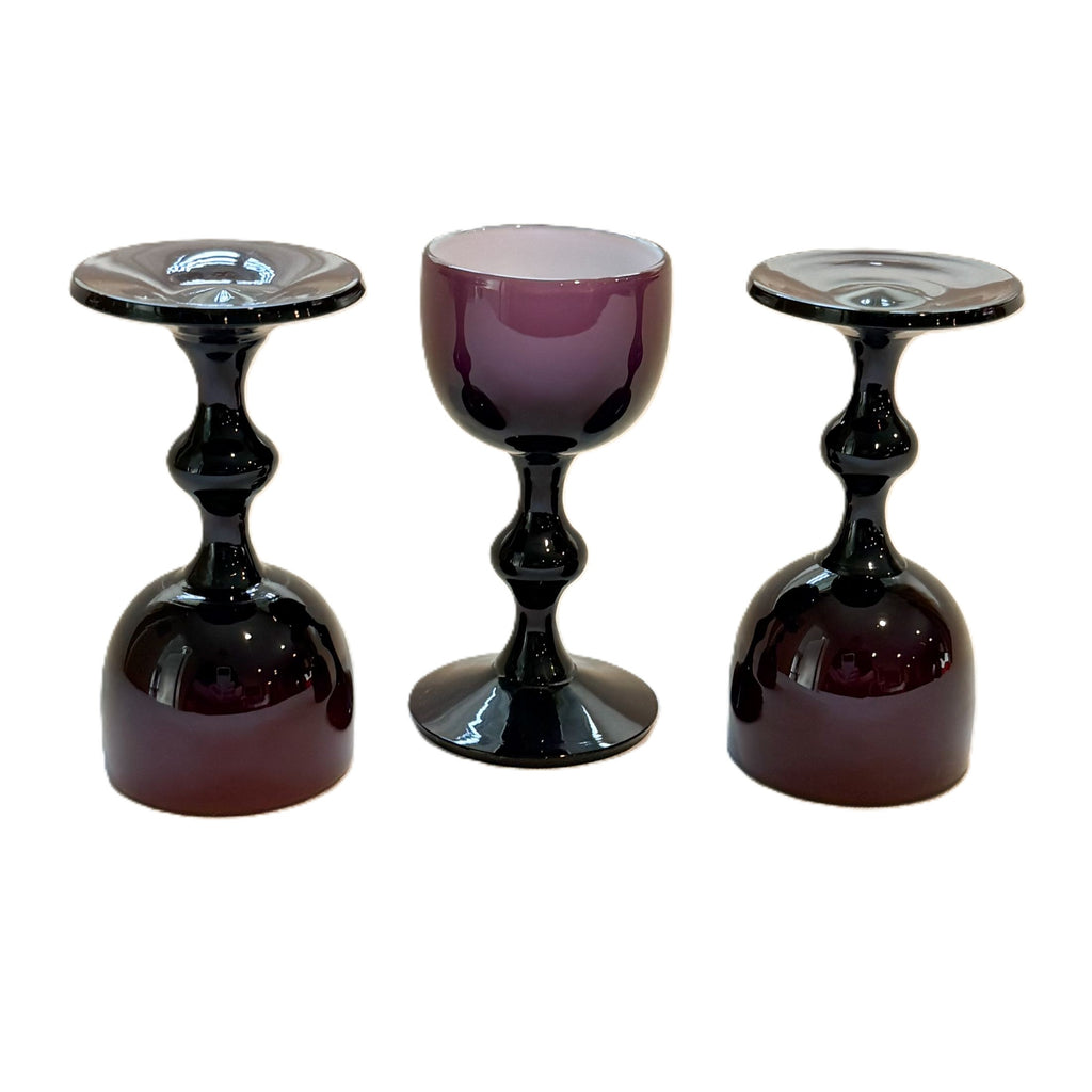 Vintage burgundy cased glass Carlo Moretti cordial glasses.