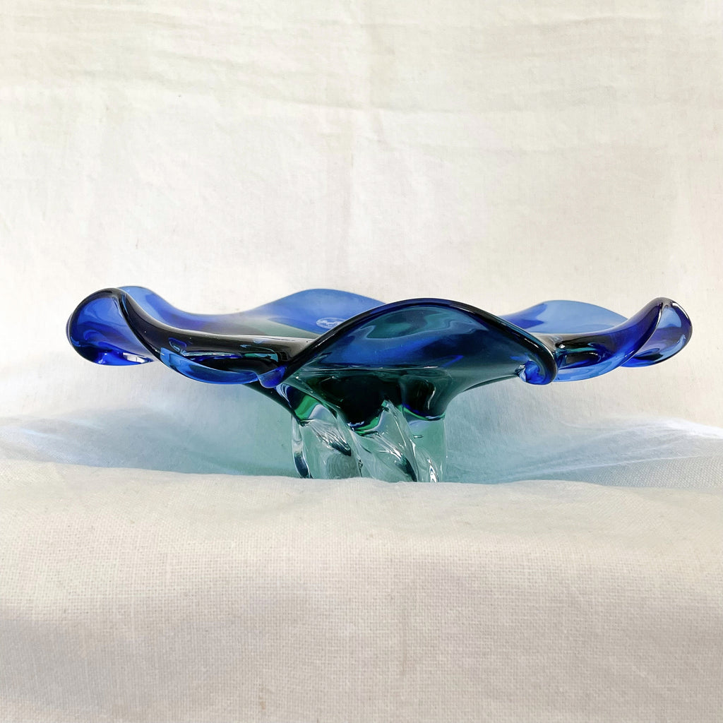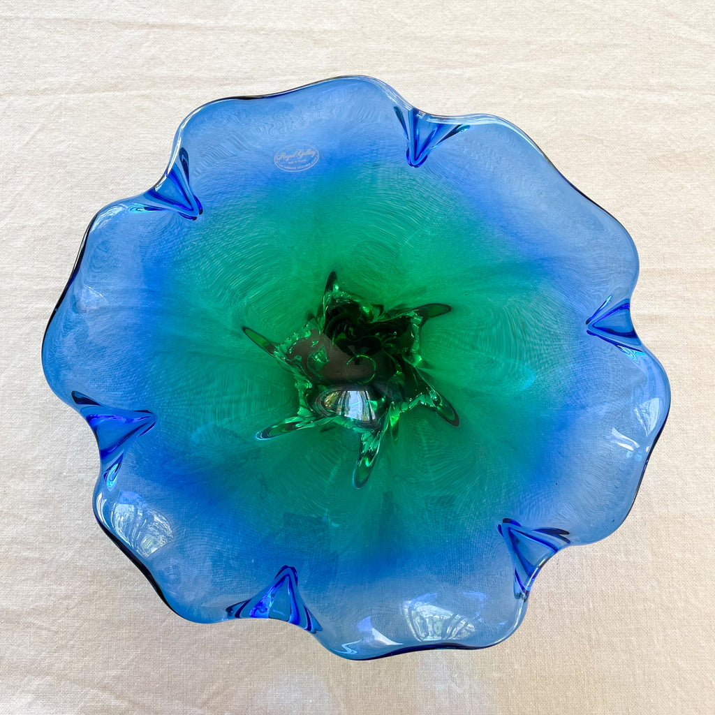 Made in Poland, very heavy handmade glass in 'flower design'.
