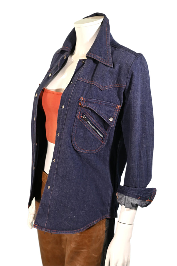 Vintage 60s Denim Fitted Shirt, Sears Junior Bazaar Denim Top XS/S