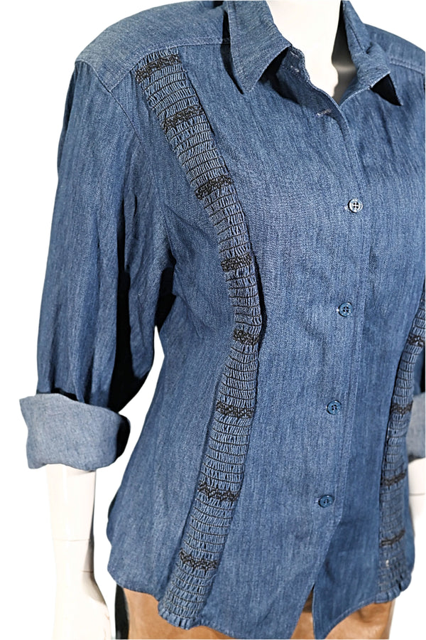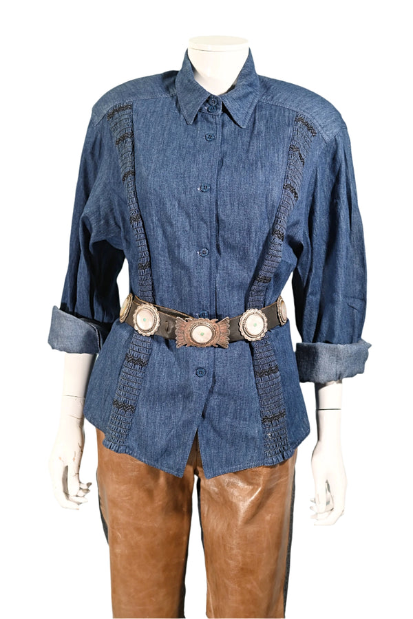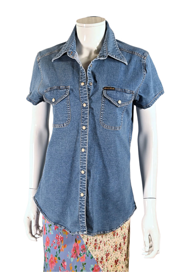 90s Banana Republic Denim Top, Snap Buttons Southwestern Top M