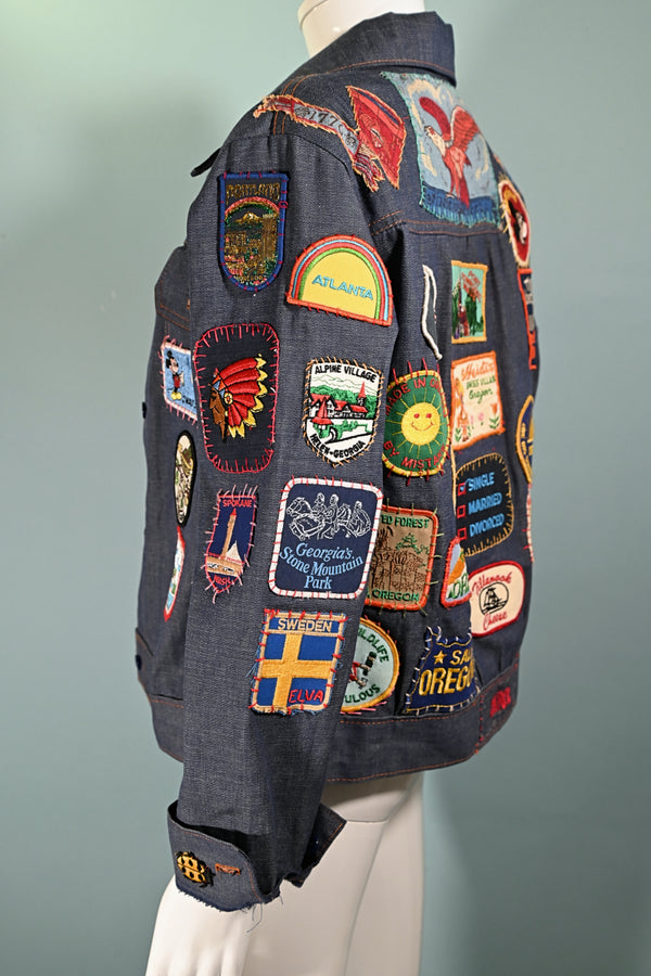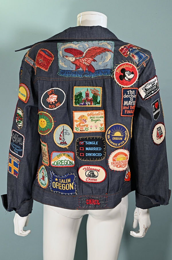 SOLD Vintage 70s Levis Denim Jacket, Travel Souvenir Patches, Oregon Disneyland OOAK M/L