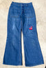 High waist, with waistband bell bottom jeans. ca-1960s/70s