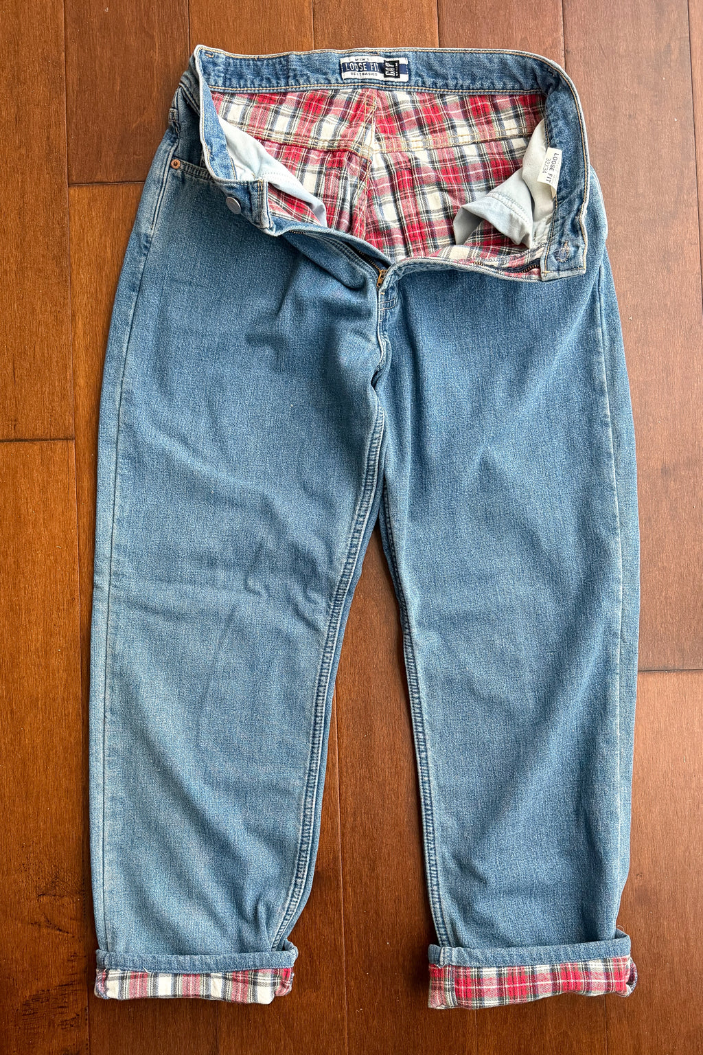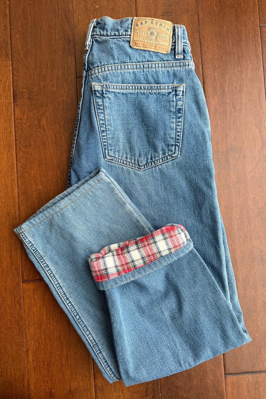 Vintage 90s Gap grunge loose fit jeans with plaid lining.
