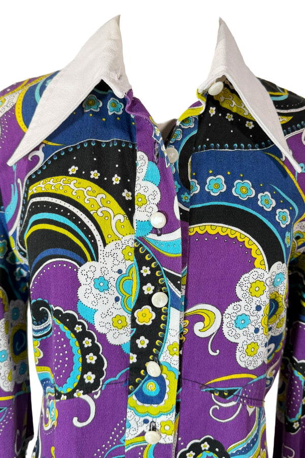 Vintage 60s Mod Psychedelic Print Dress, White Collar & Cuffs