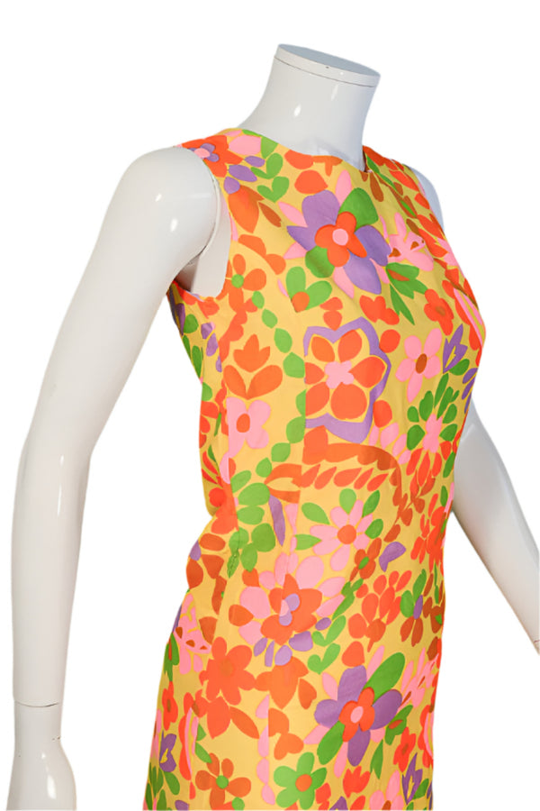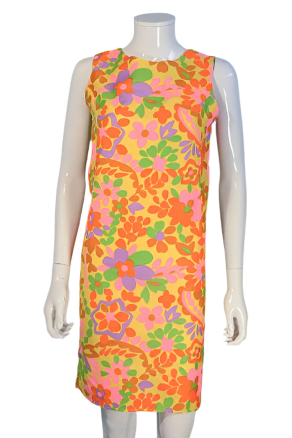 Vintage 60s Mod Yellow Floral Mini Dress S