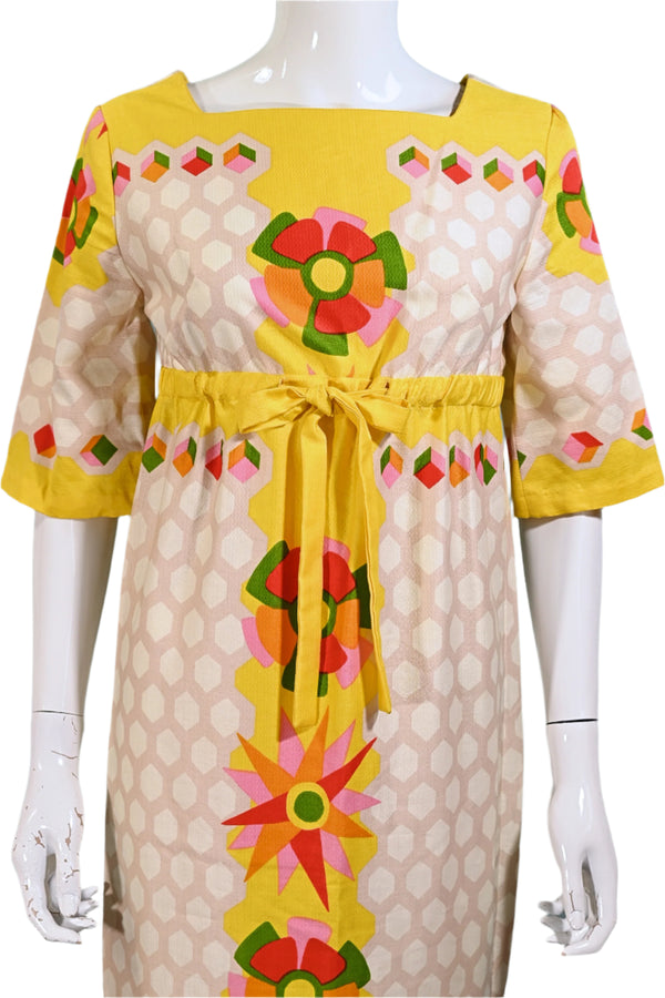 Vintage 60s/70s Linen Mini Dress, Geometric Print M