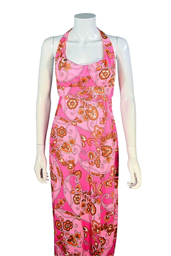 Vintage 60s/70s Floral Print Empire Waist Sleeveless Maxi Dress M