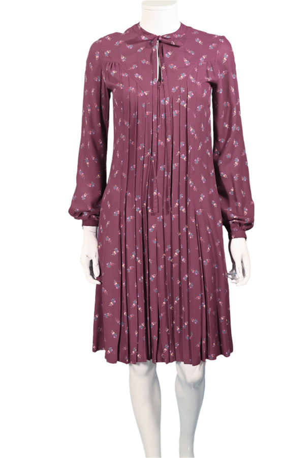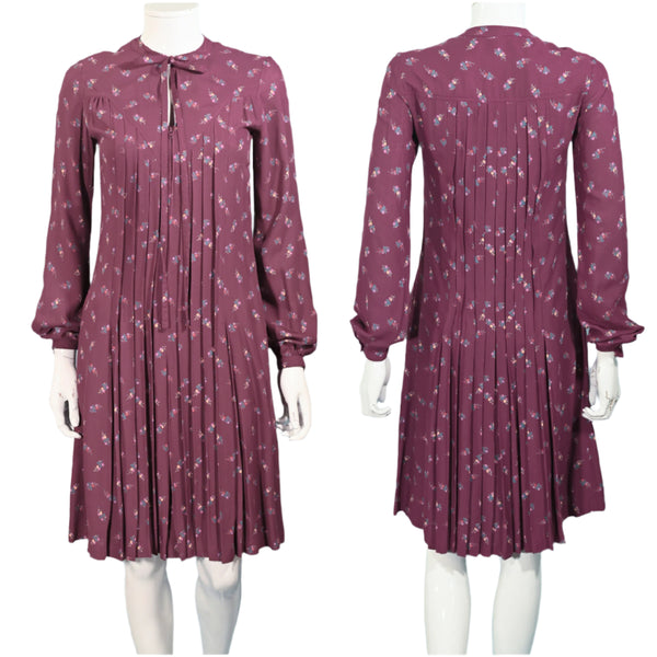 70s Nipon Boutique Floral Dress, Pleated Dark Academia Dress S
