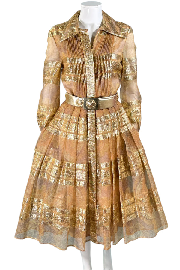 70s Bohemian Gold Accented Party Dress, Indian Ethnic Boho Design 31" W