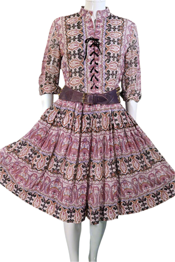 Avalon 60s/70s Bohemian Corset Lace Up Indian Print Hippie Dress