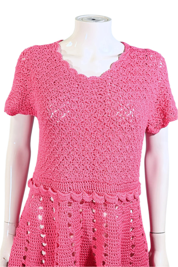 Vintage 60s MOD Hot Pink Crochet Mini Dress
