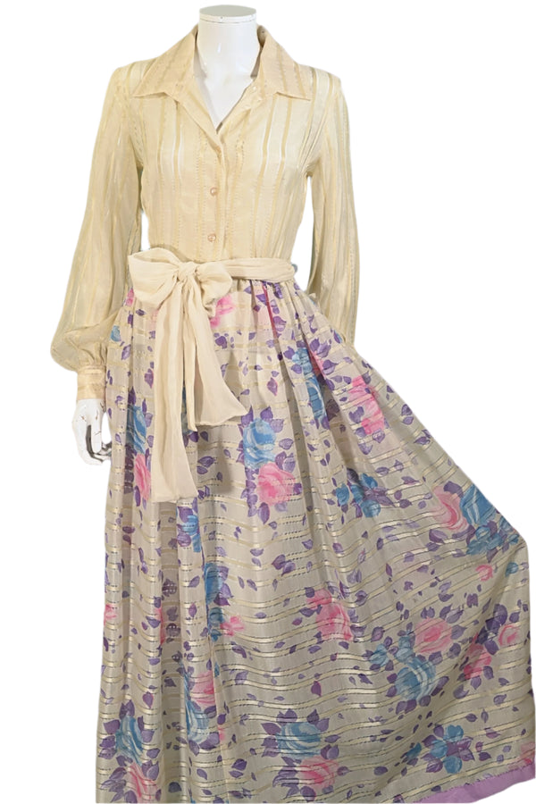Vintage 60s/70s Floral Empire Waist Maxi Dress by Gillian O'Malley S