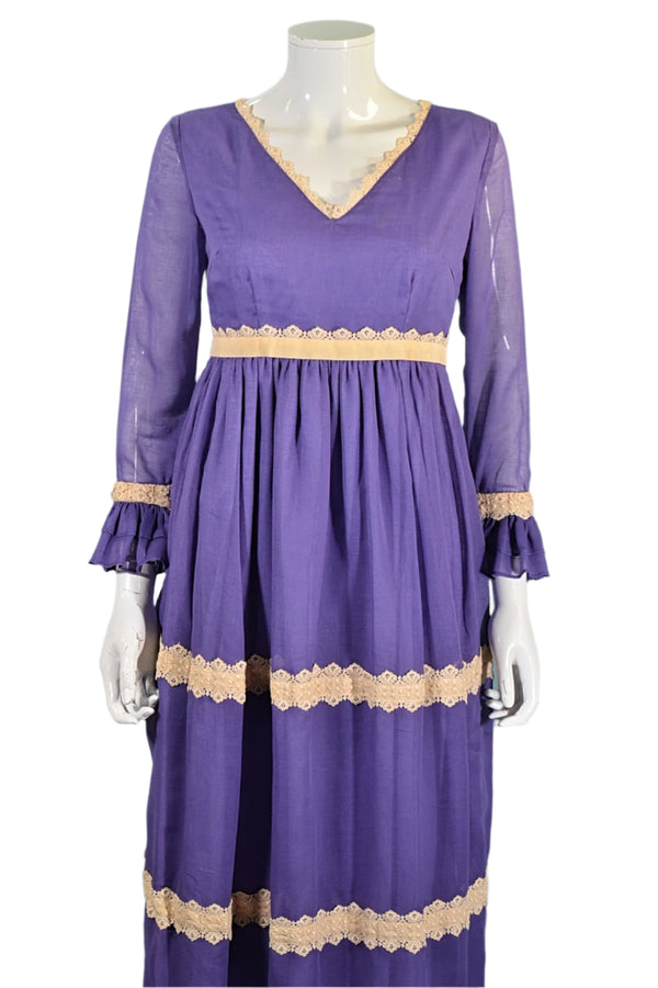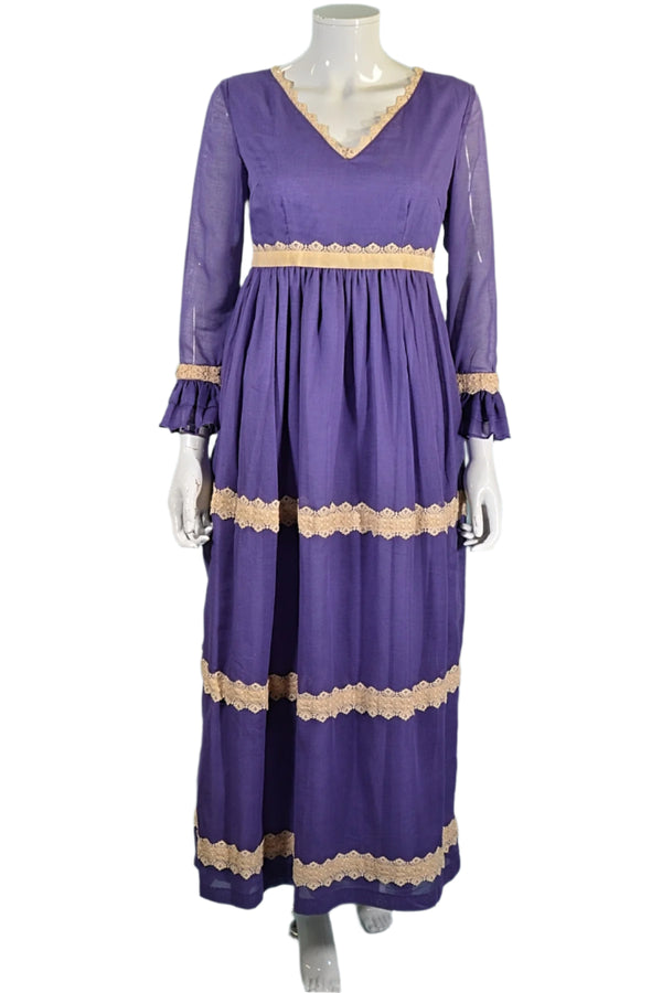 Vintage 60s/70s Mod Purple Empire Waist Maxi Dress XS