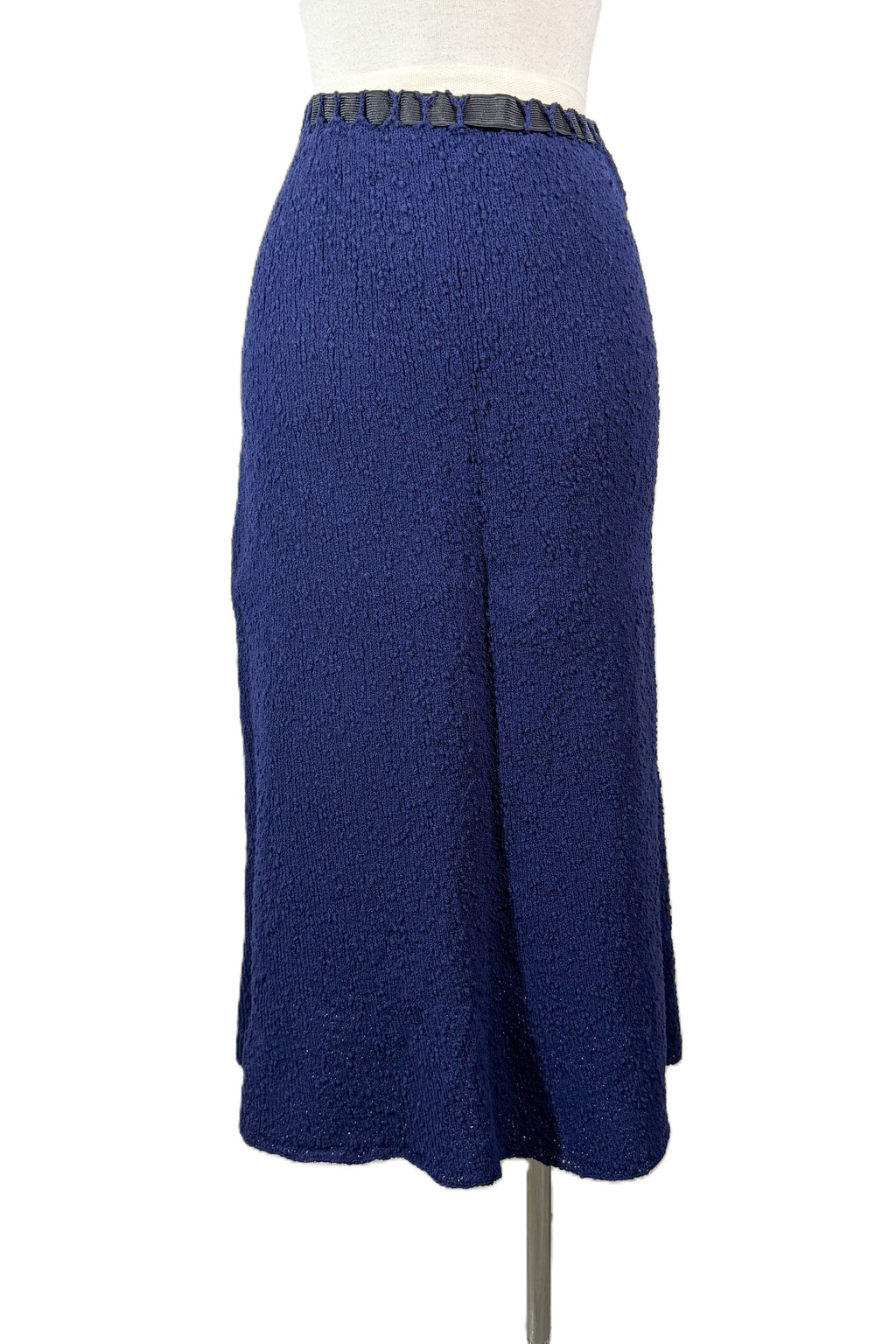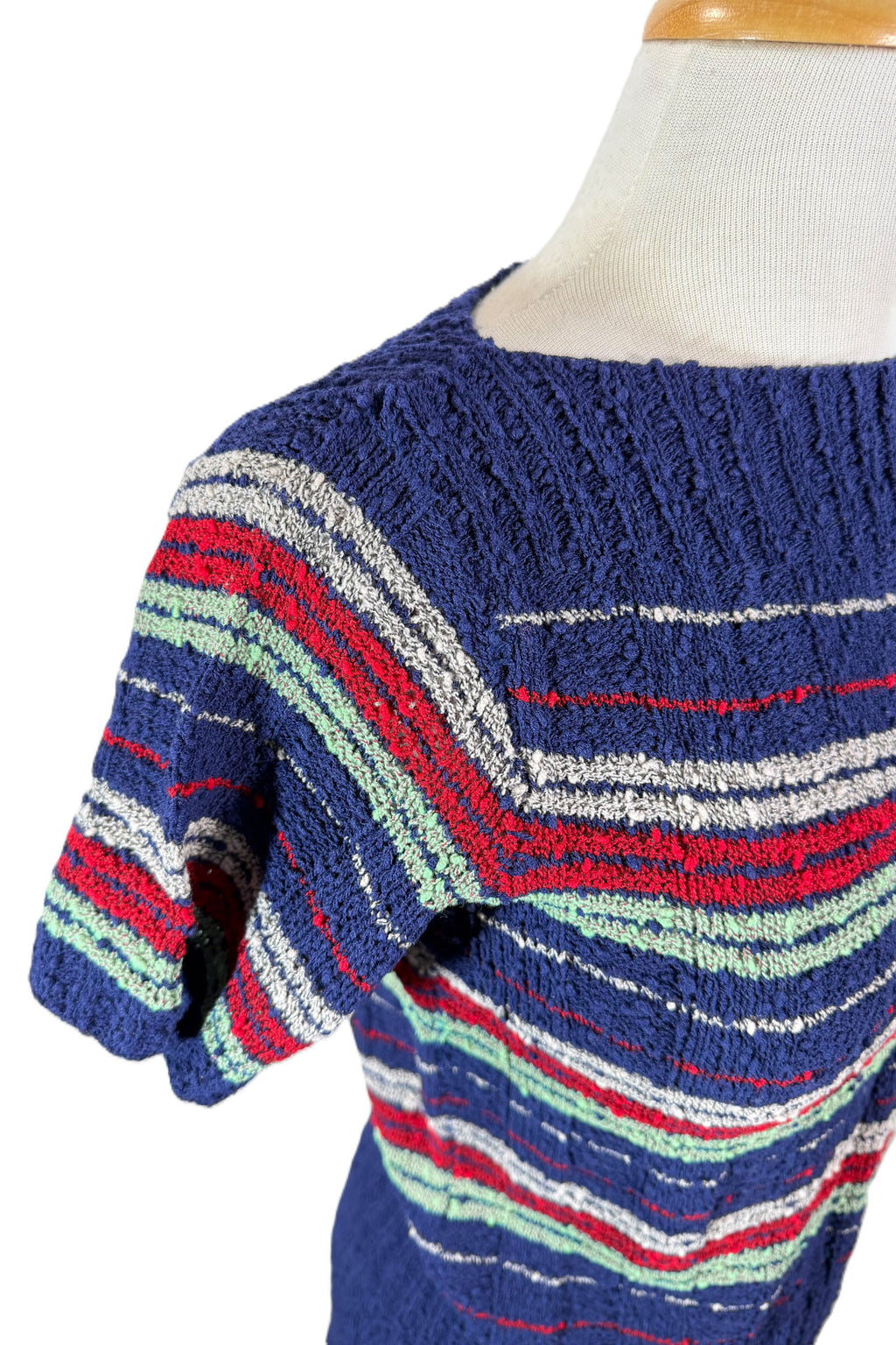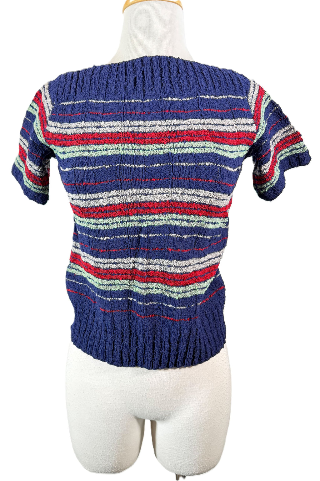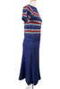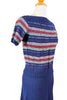 Short sleeve pullover top with stripes, slim A line skirt with elastic waist.