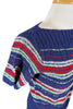 Top has ribbed boatneck neckline and ribbed waistband area.