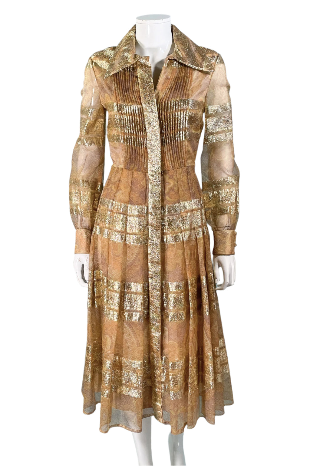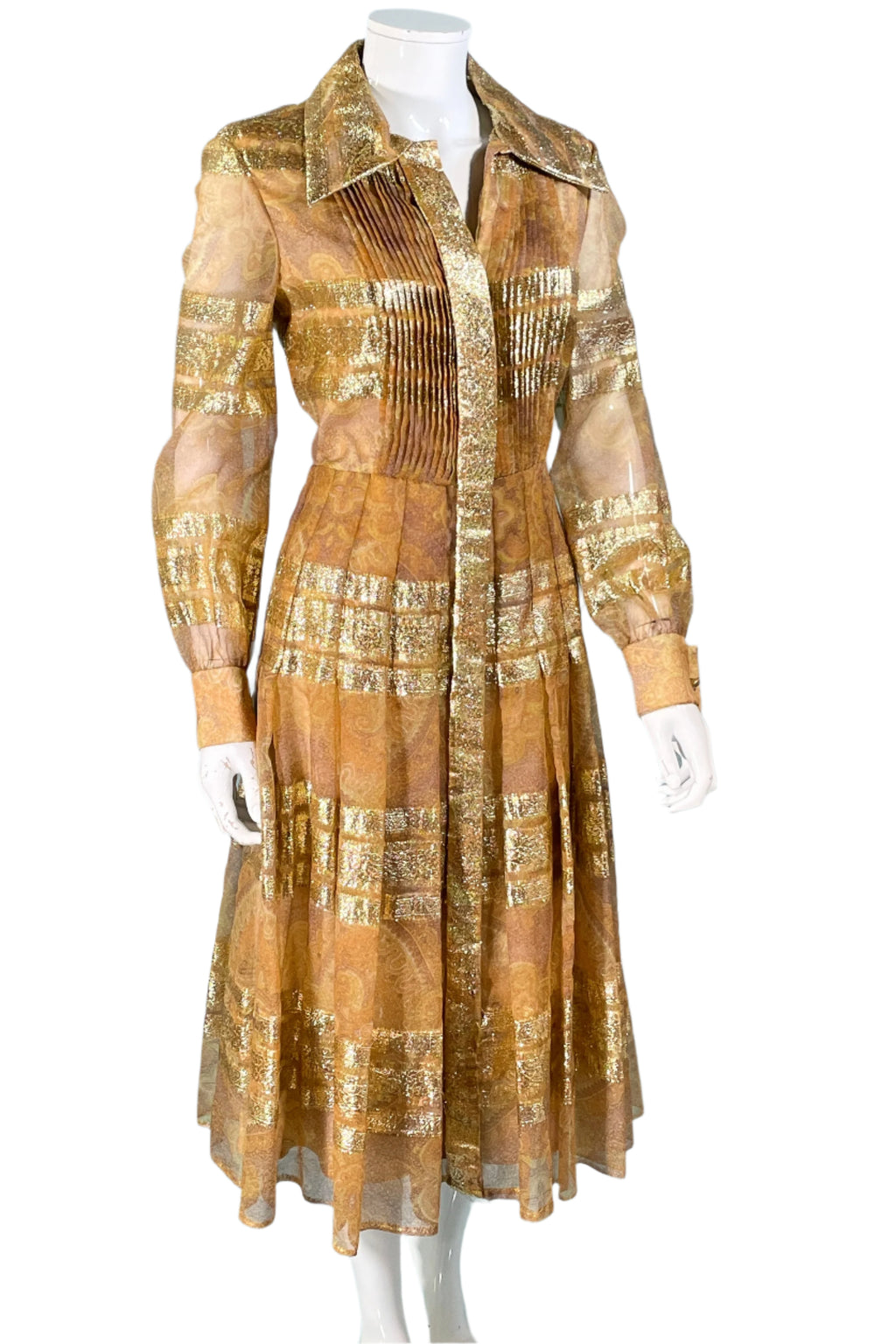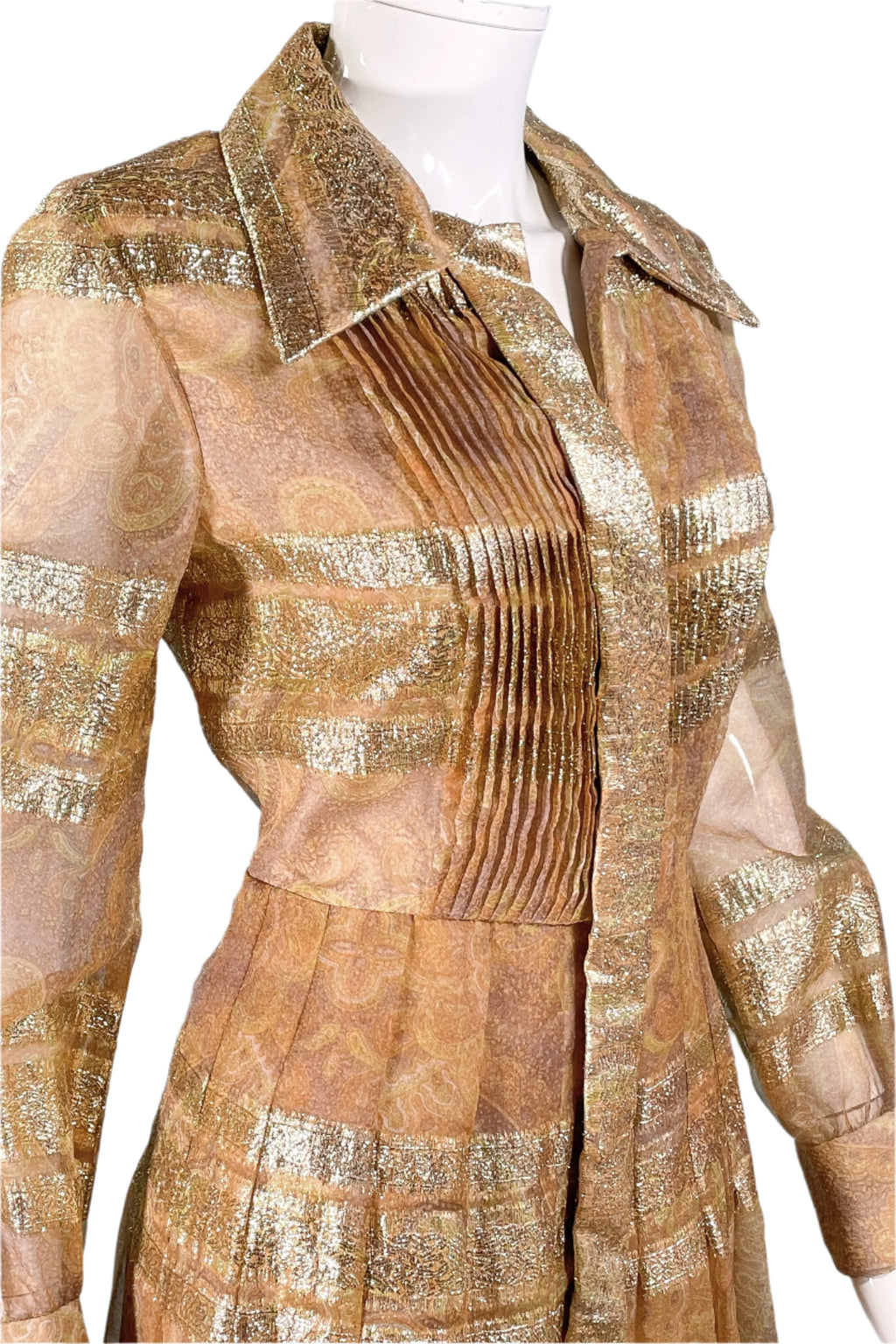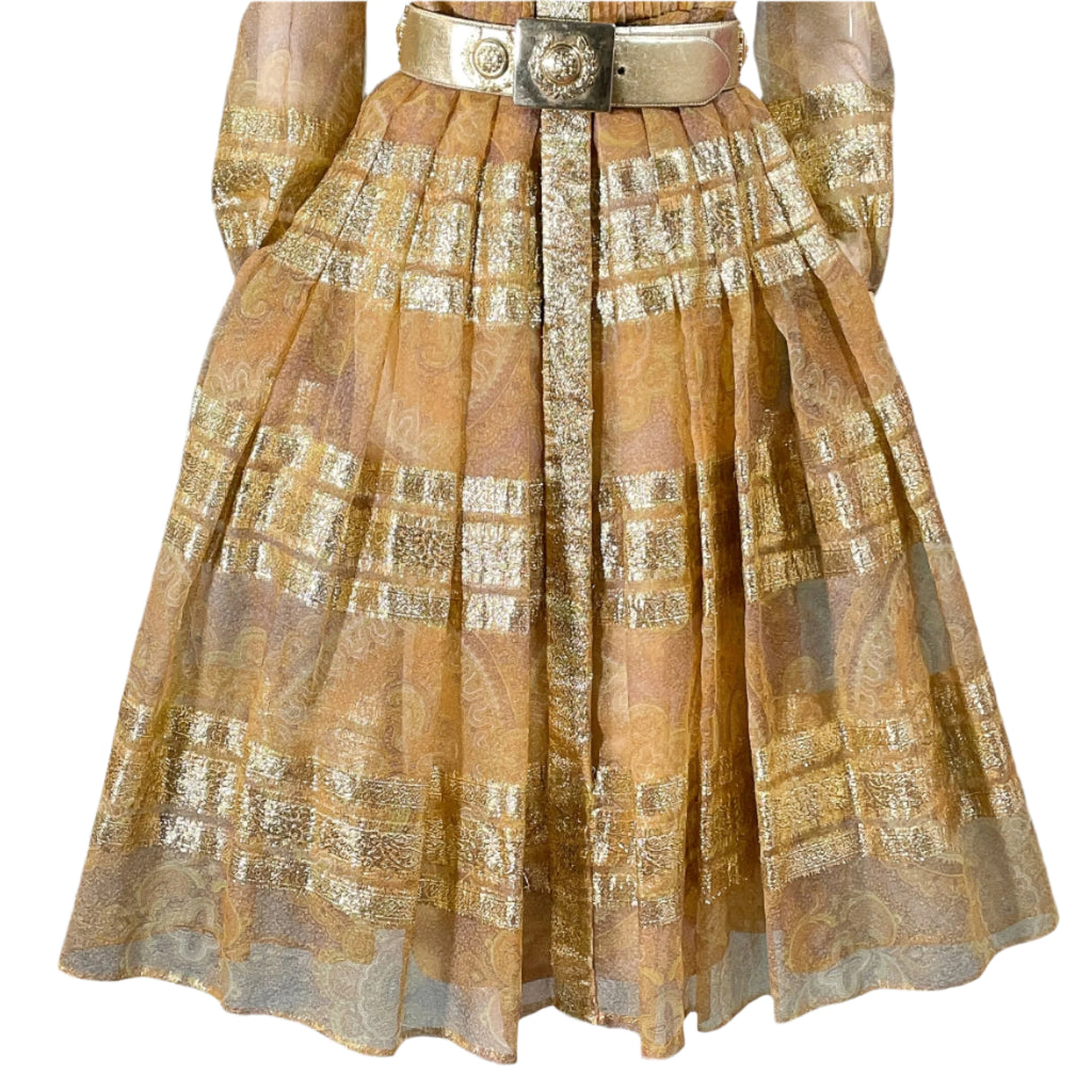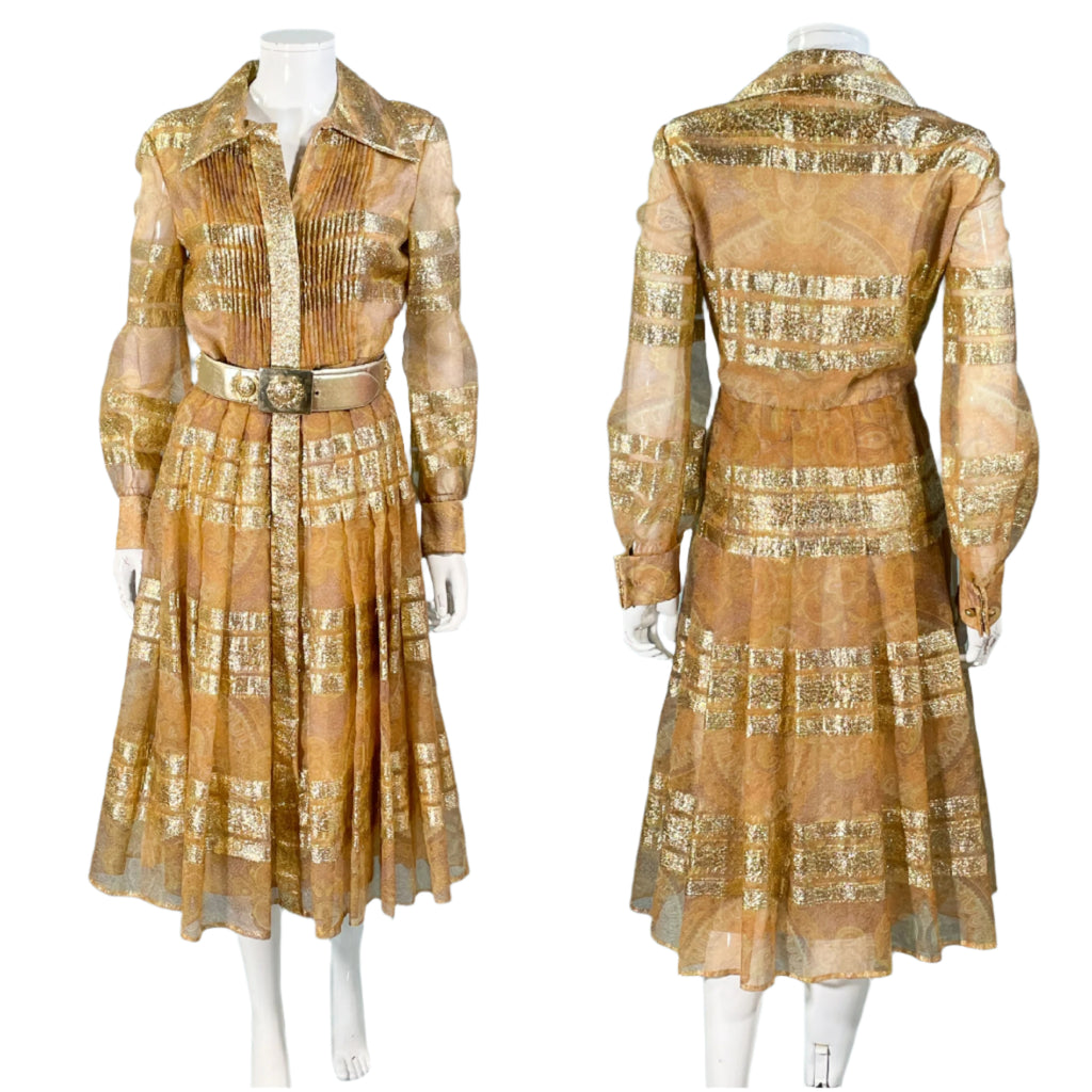 Vintage 70s shimmering metallic gold accented dress.