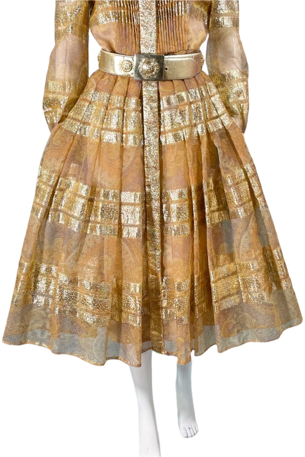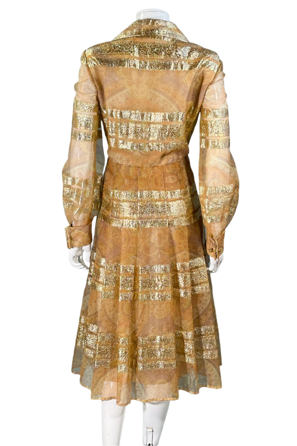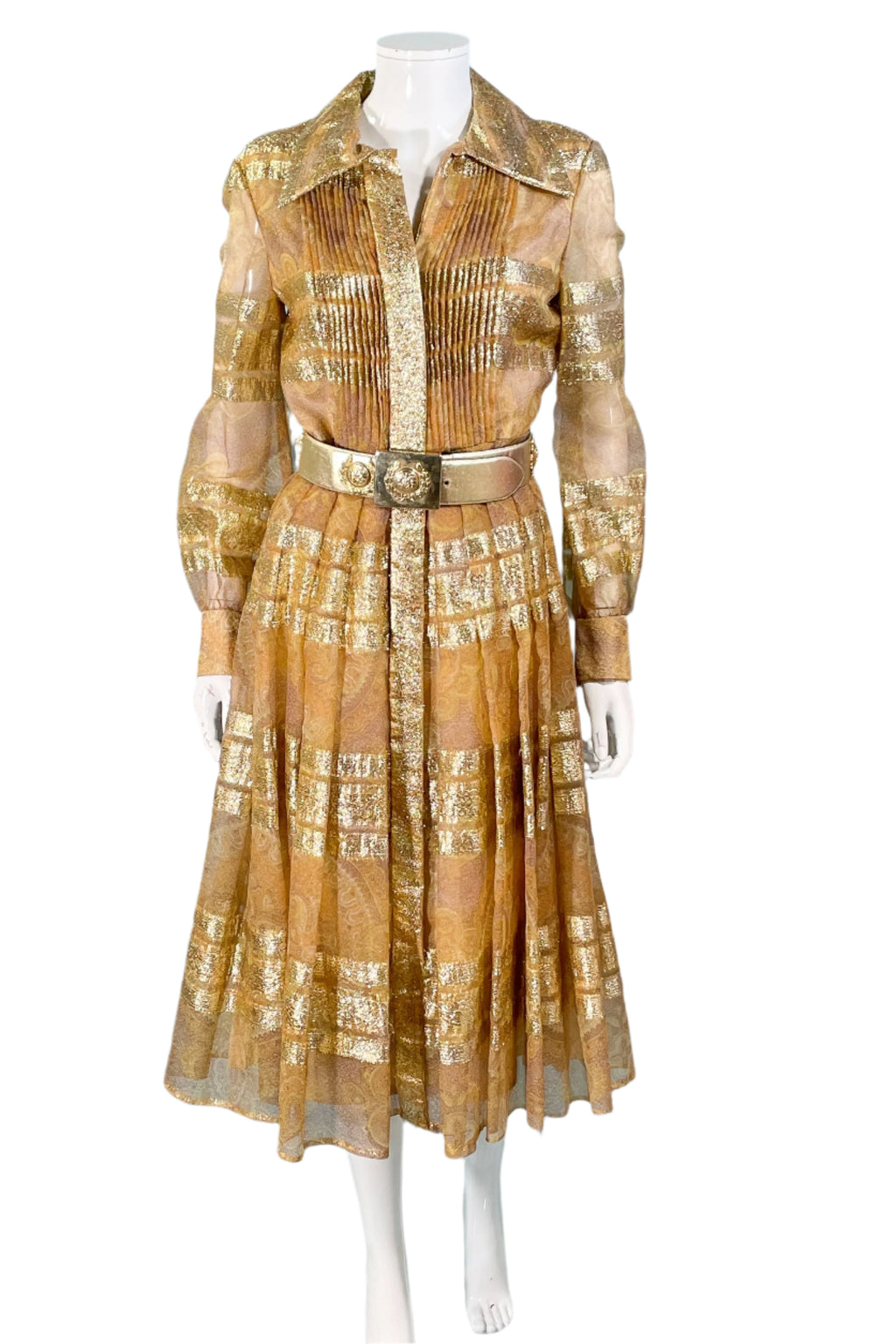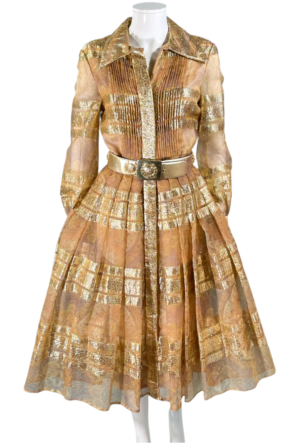 Vintage 70s shimmering metallic gold accented dress.