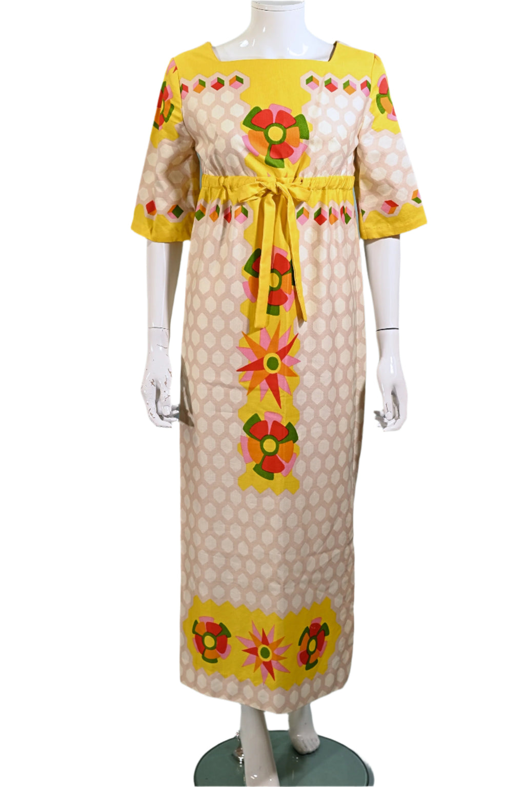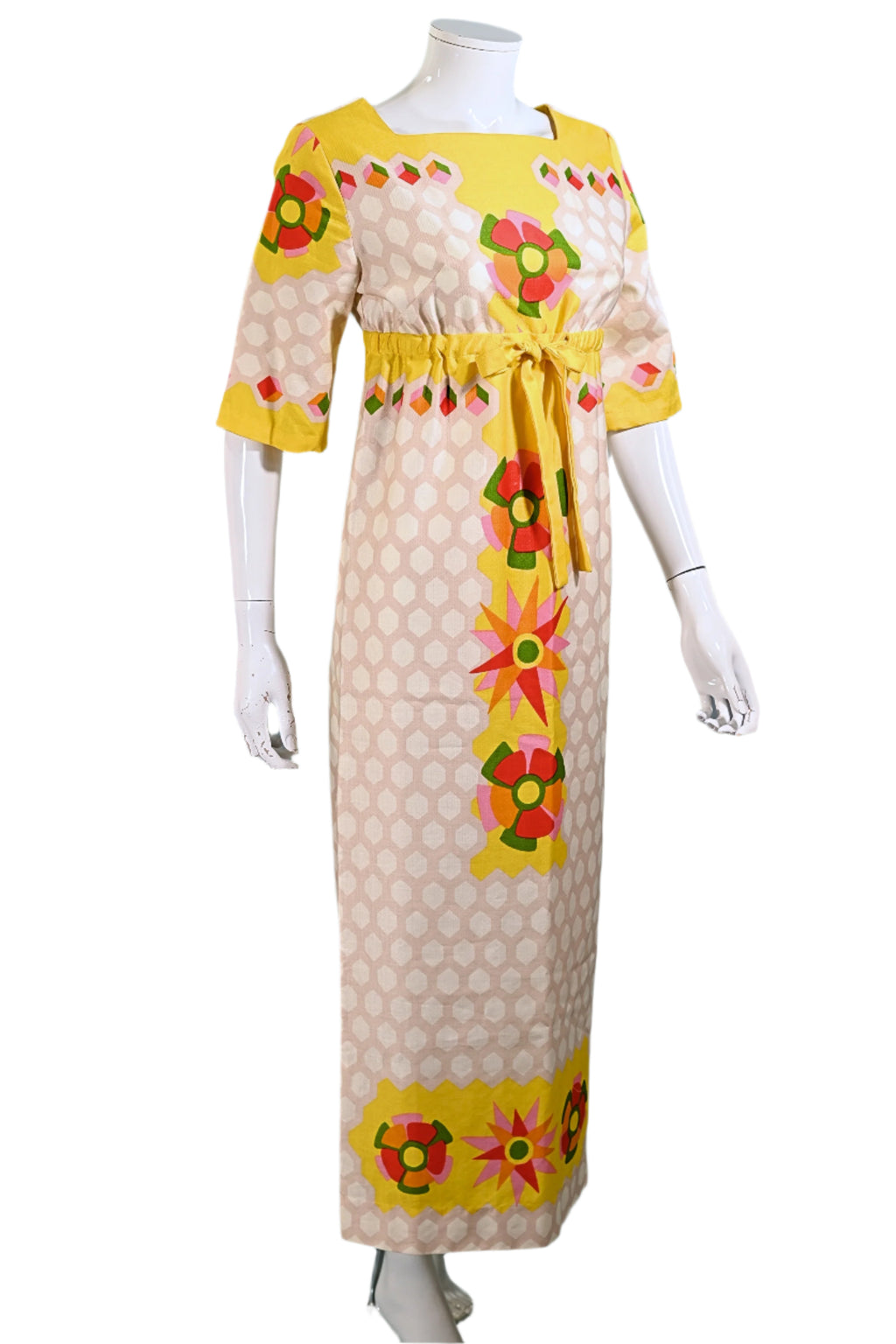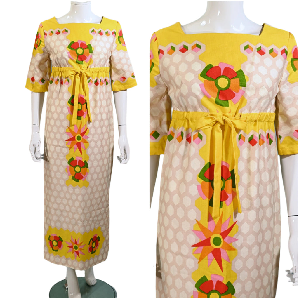 Alex Coleman 60s Mod Hippie Maxi Dress, Empire Waist Floral Print Dress