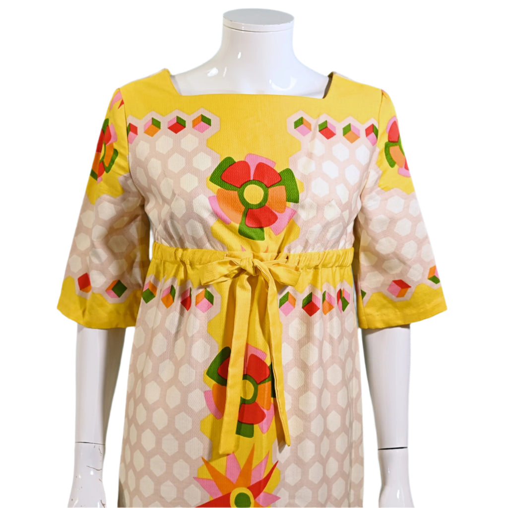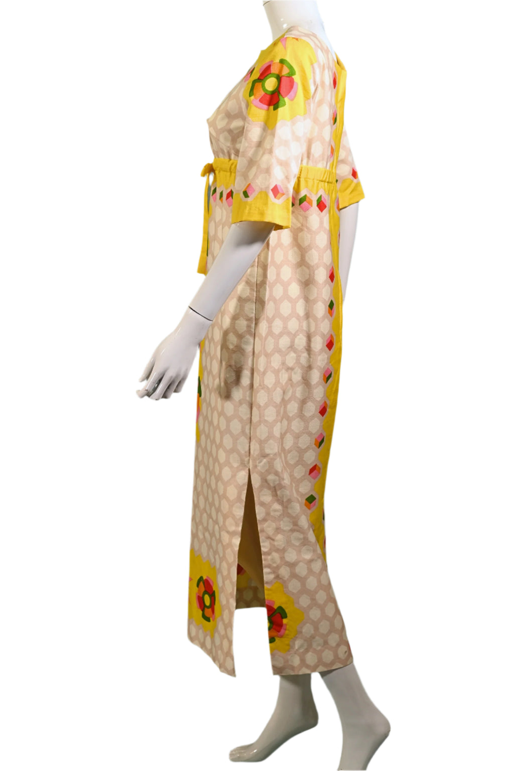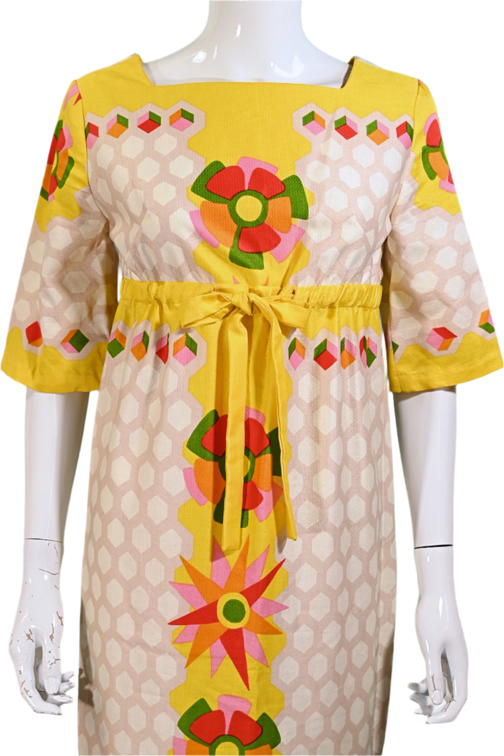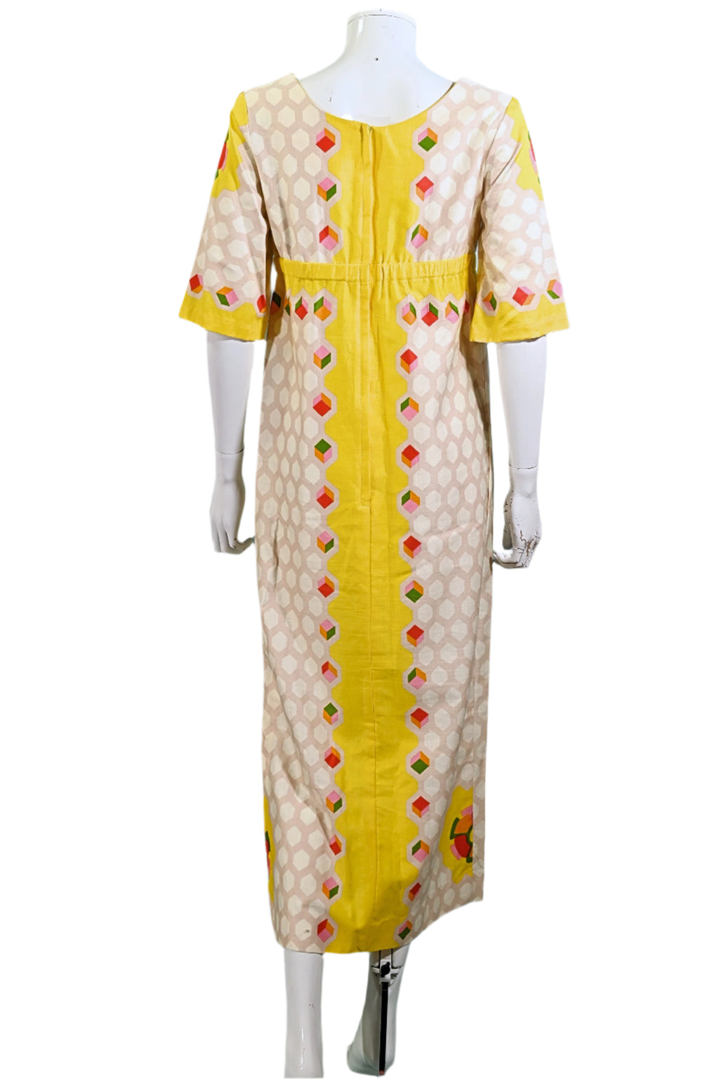 Alex Coleman 60s Mod Hippie Maxi Dress, Empire Waist Floral Print Dress