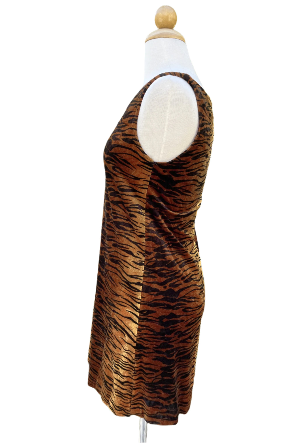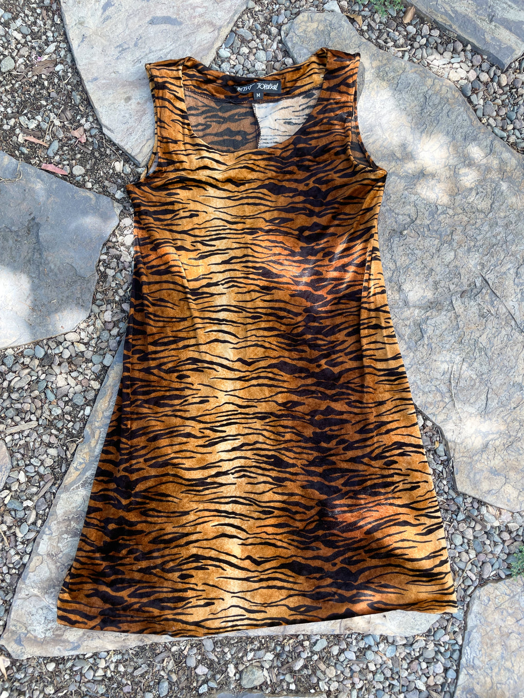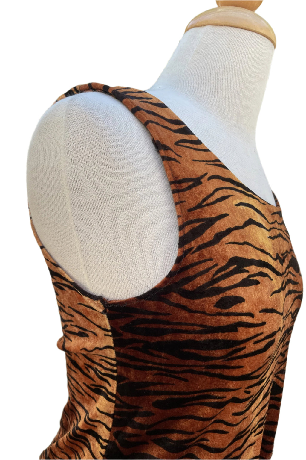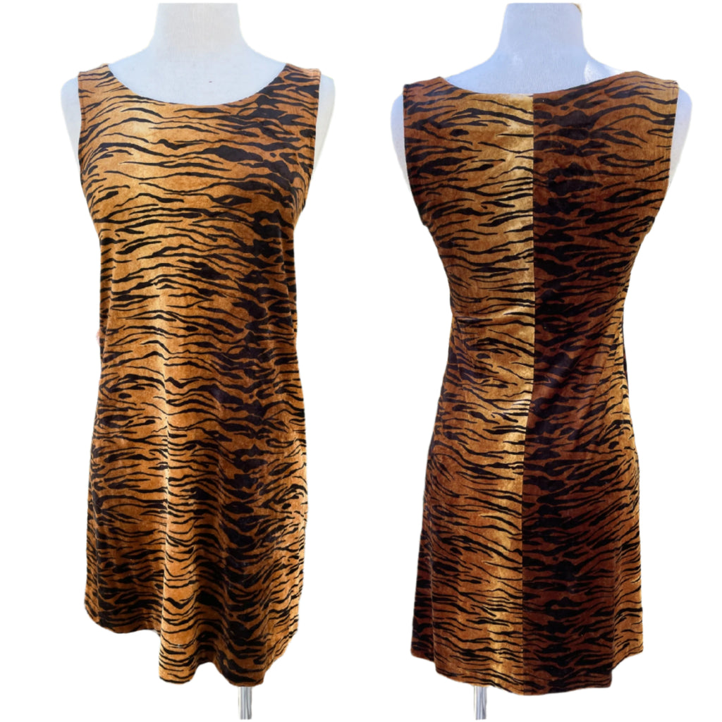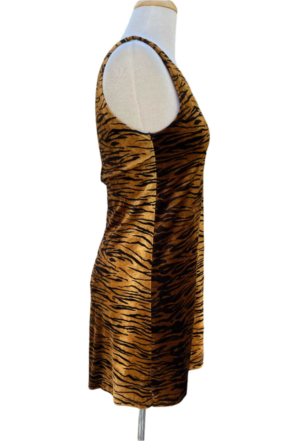 Betsey Johnson 90s Velvet Tiger Print Mini Dress S