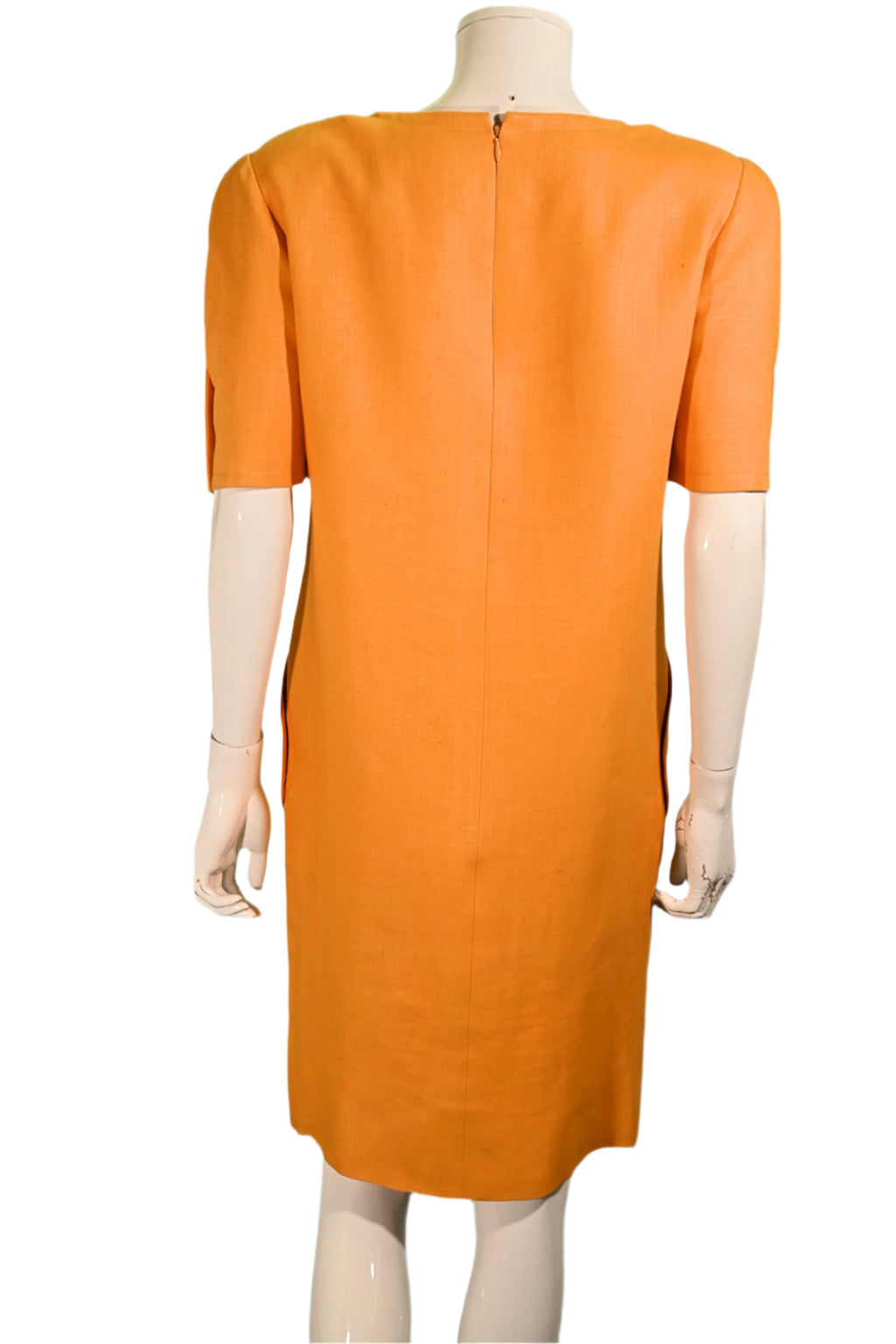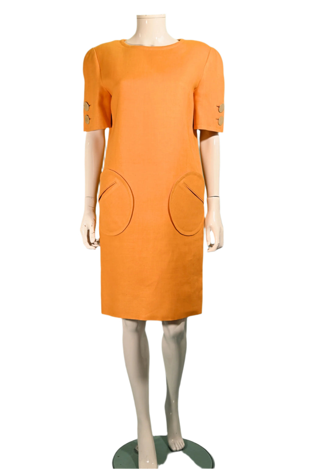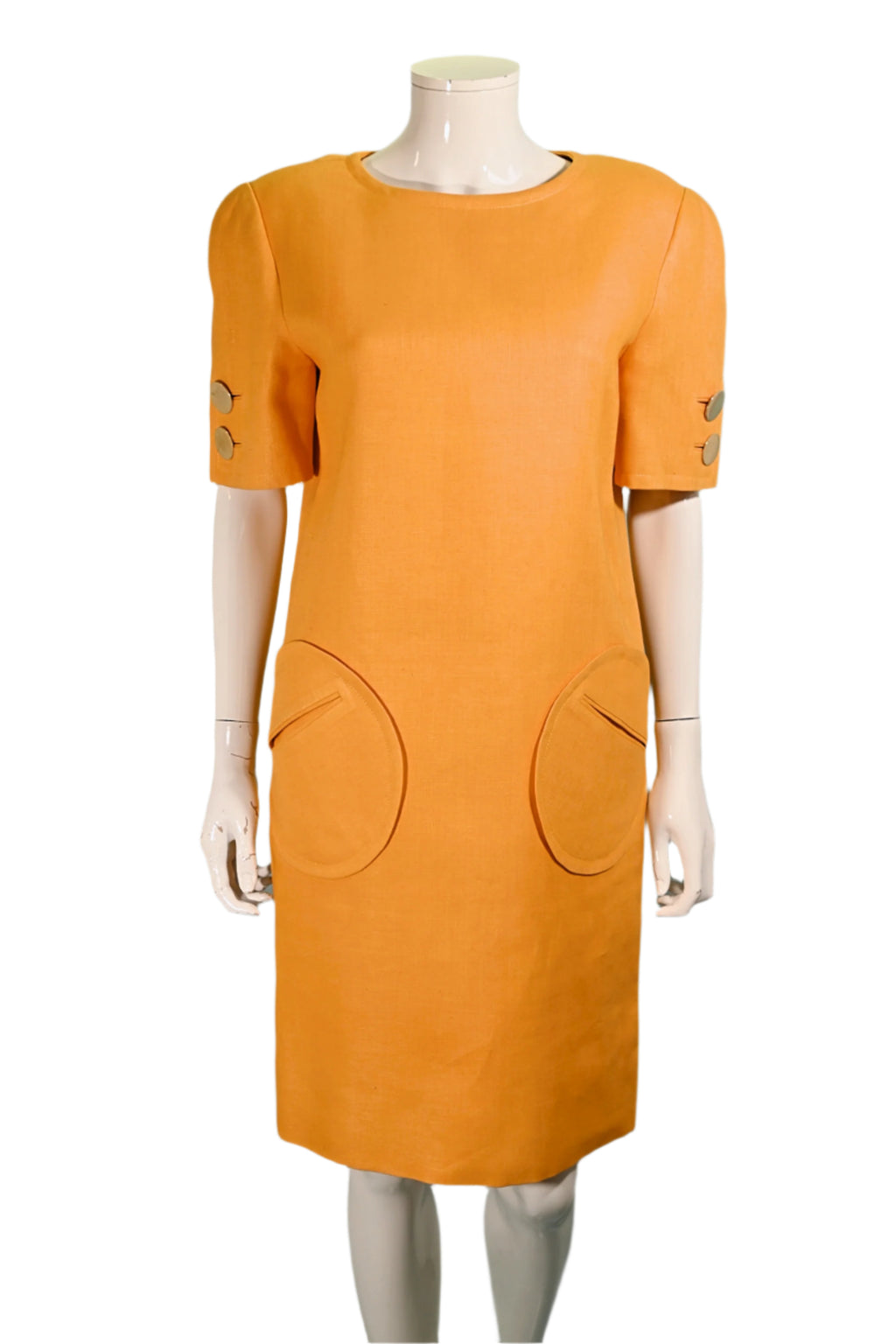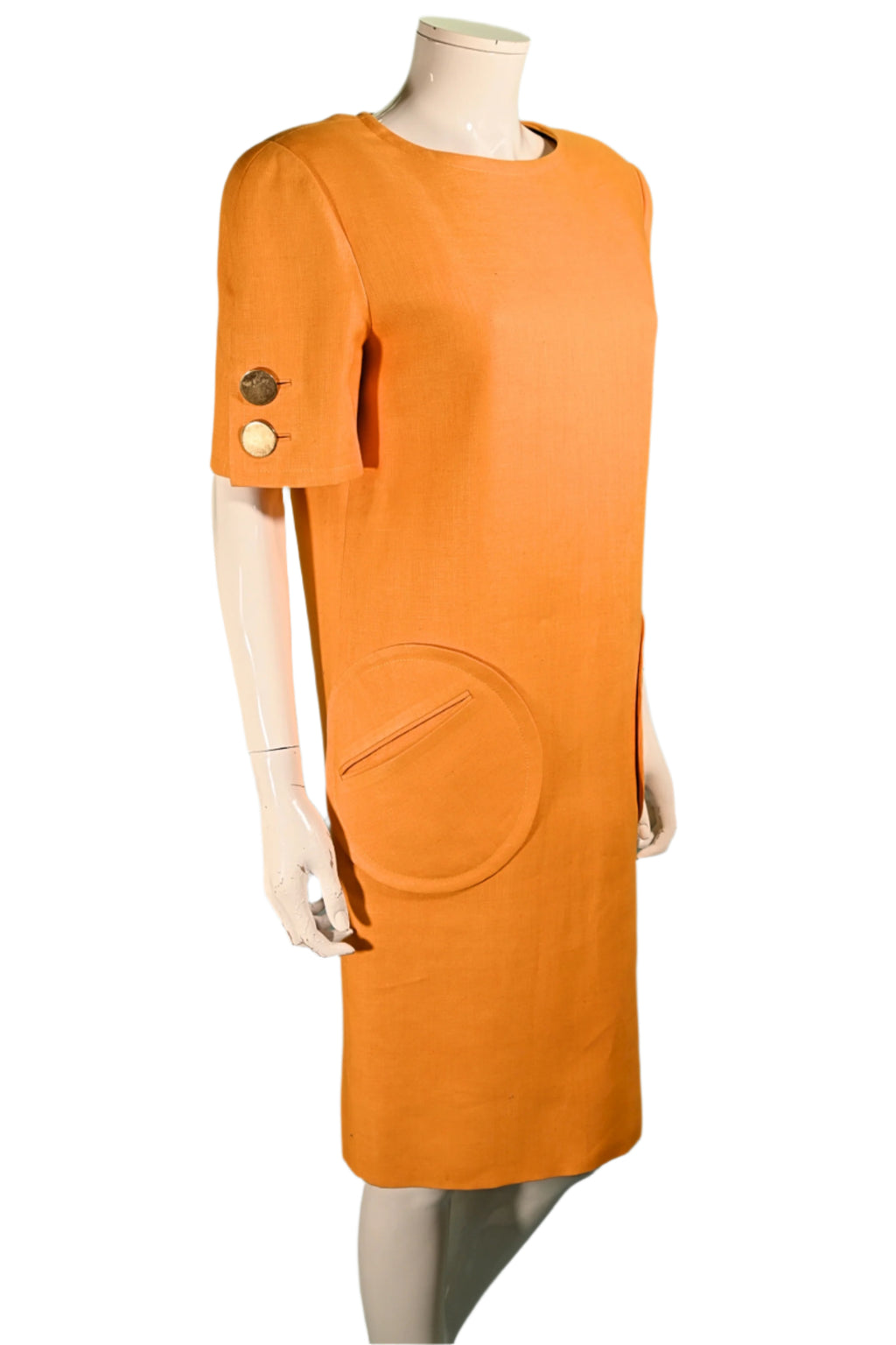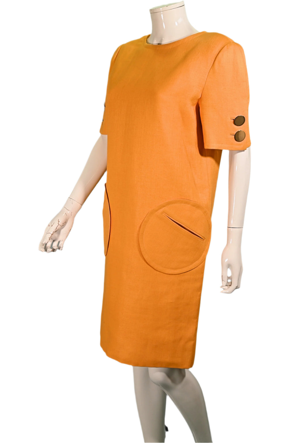 Bill Blass 1970s Golden Yellow Linen Dress, Round Pockets 10