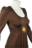 Long puff sleeves, sash tie at the back.