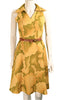 A-line skirt. Metal zipper up the back. Curved darts on bodice front & back.