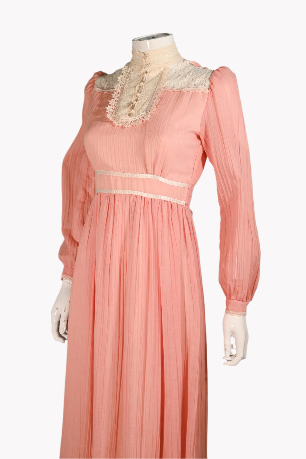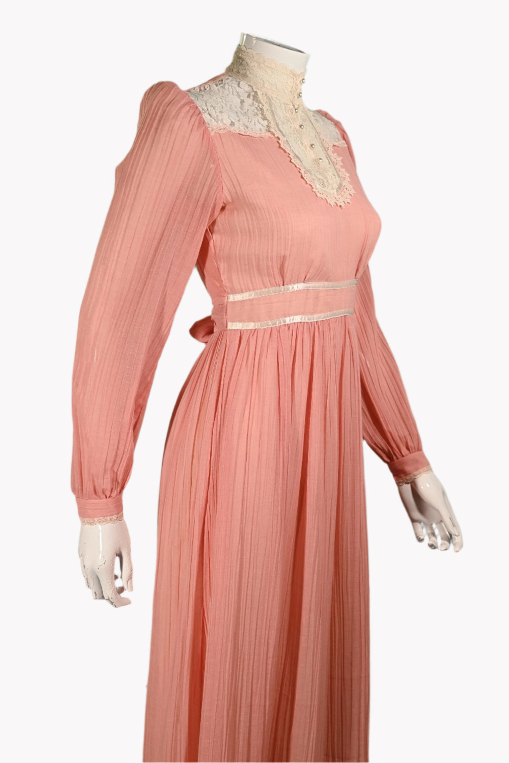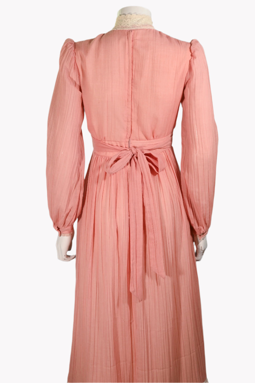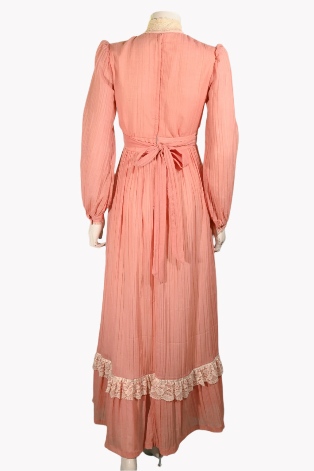 Genuine Gunne Sax Gauze Salmon Maxi Dress, Sash Tie Belt S