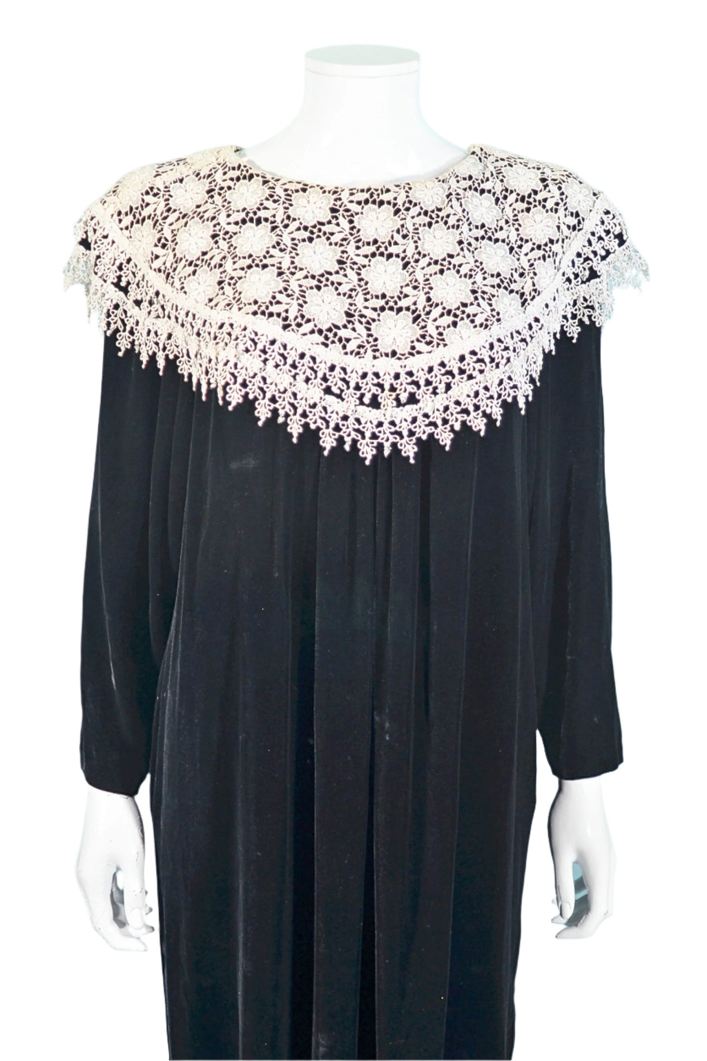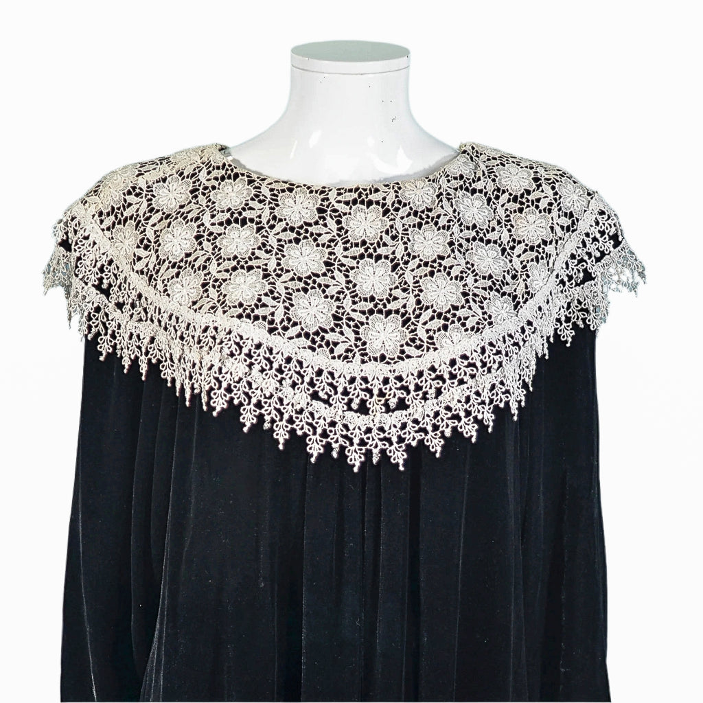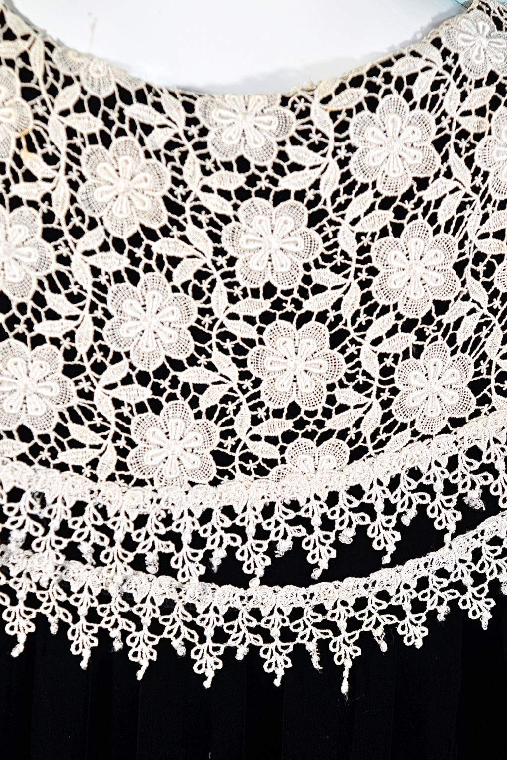The dress is a relaxed fit with a huge double-layer lace collar.
