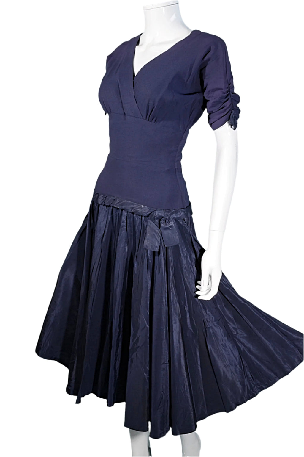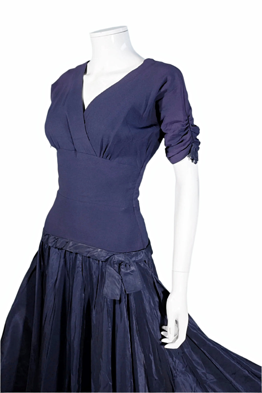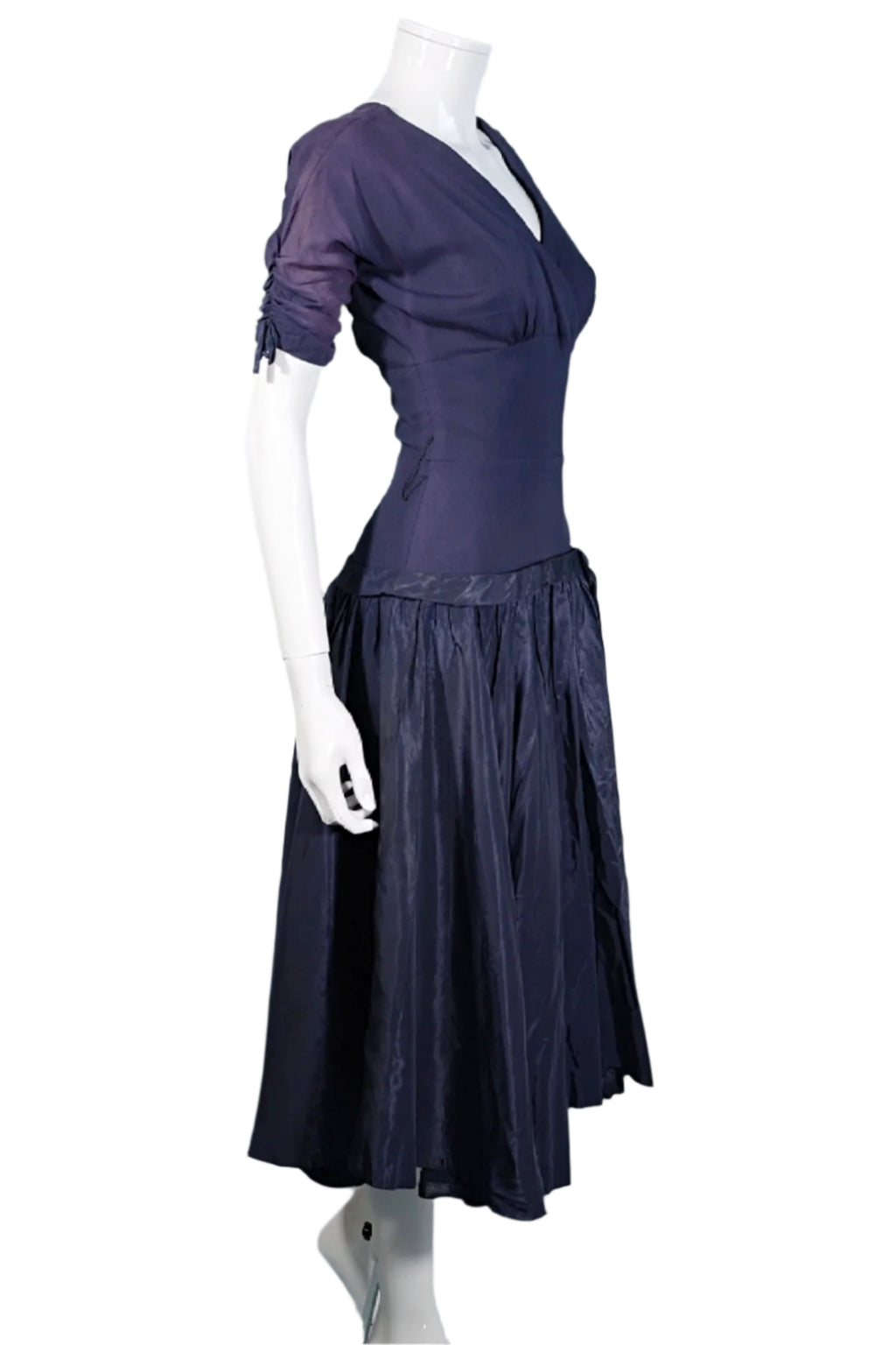CONDITION: The overall structure of the dress is great, seams and zipper all very good. There is fading mostly concentrated in the shoulder and sleeve area the right sleeve is more affected than the left, but both are faded.