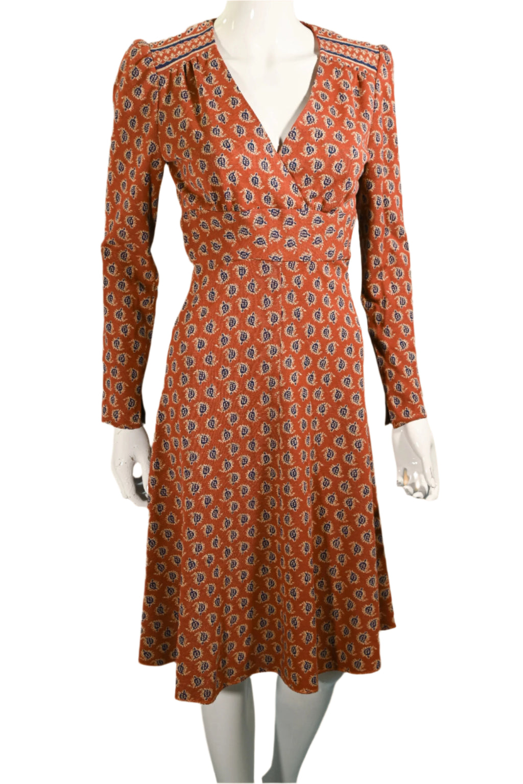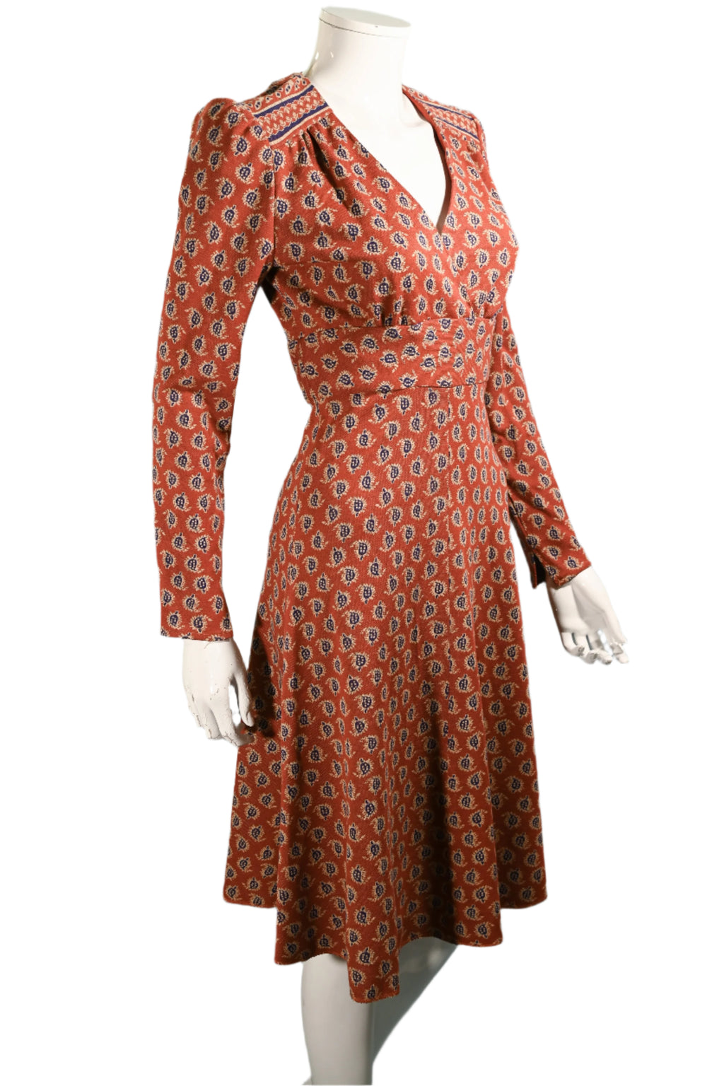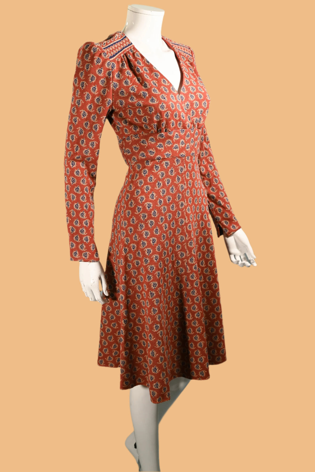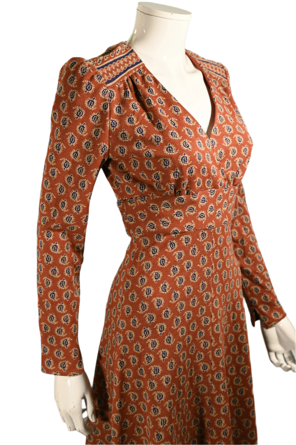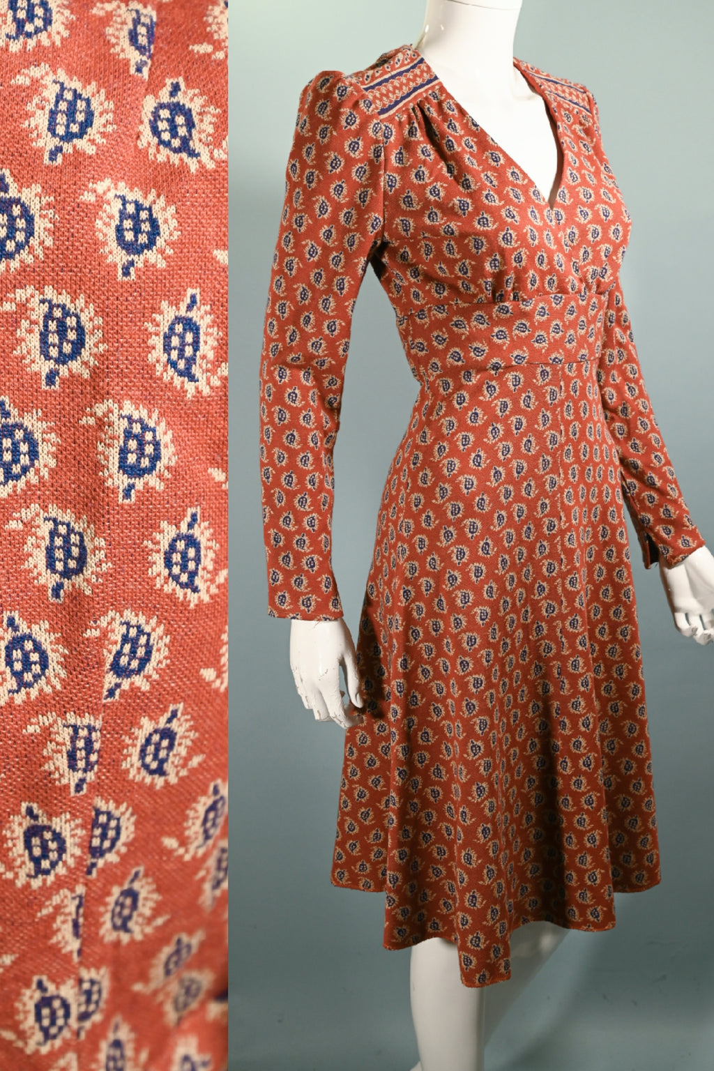 Vintage Knit dress with Indian paisley print and accent print on the shoulders.