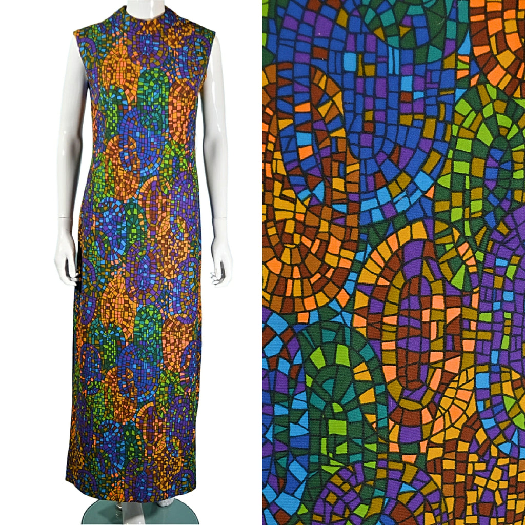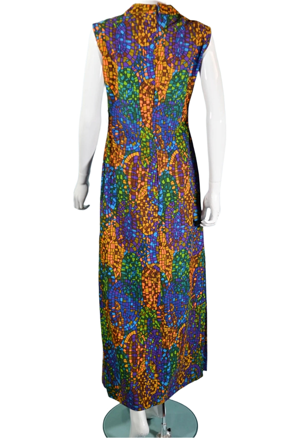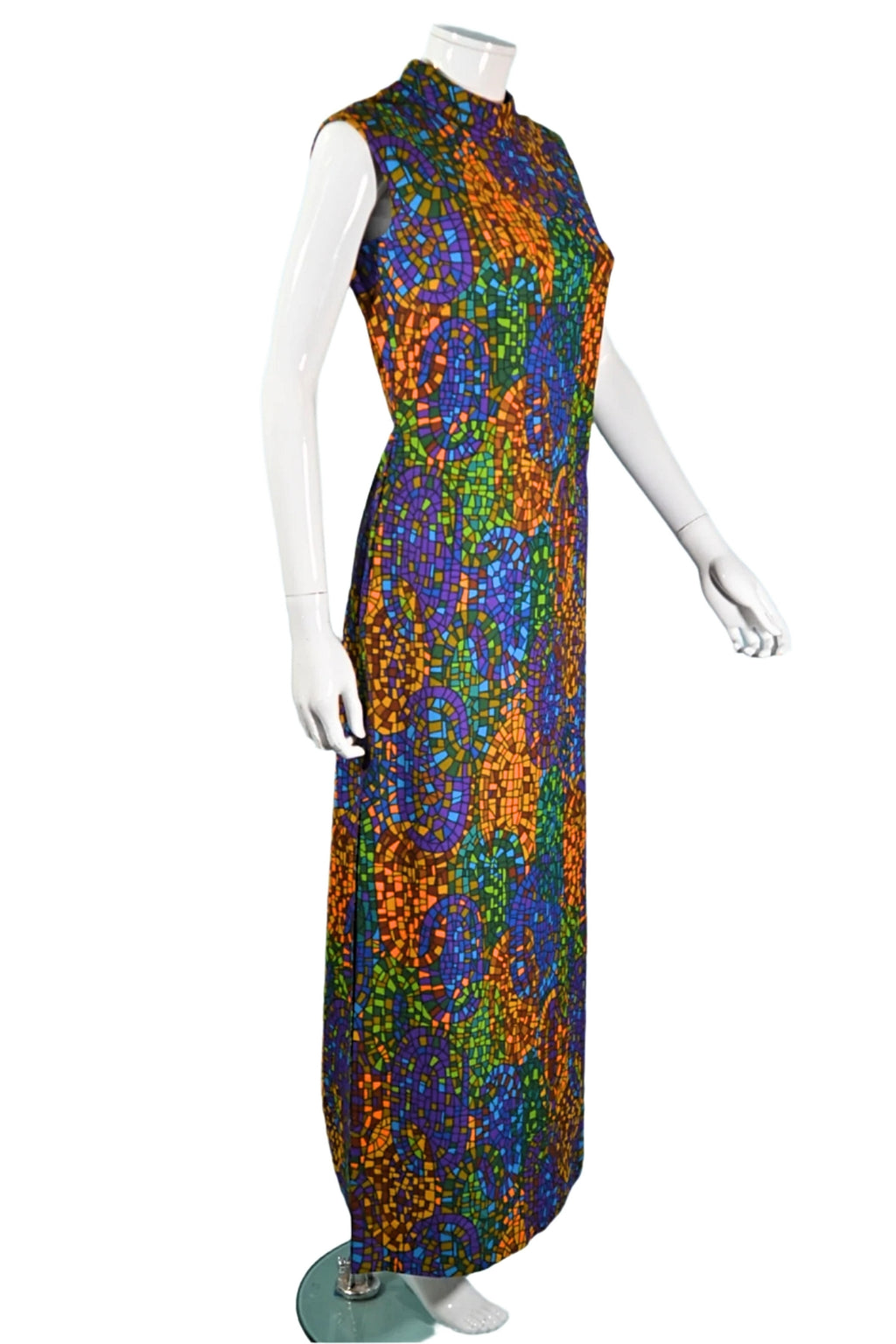 Vintage 60s mock turtleneck sleeveless maxi dress.
