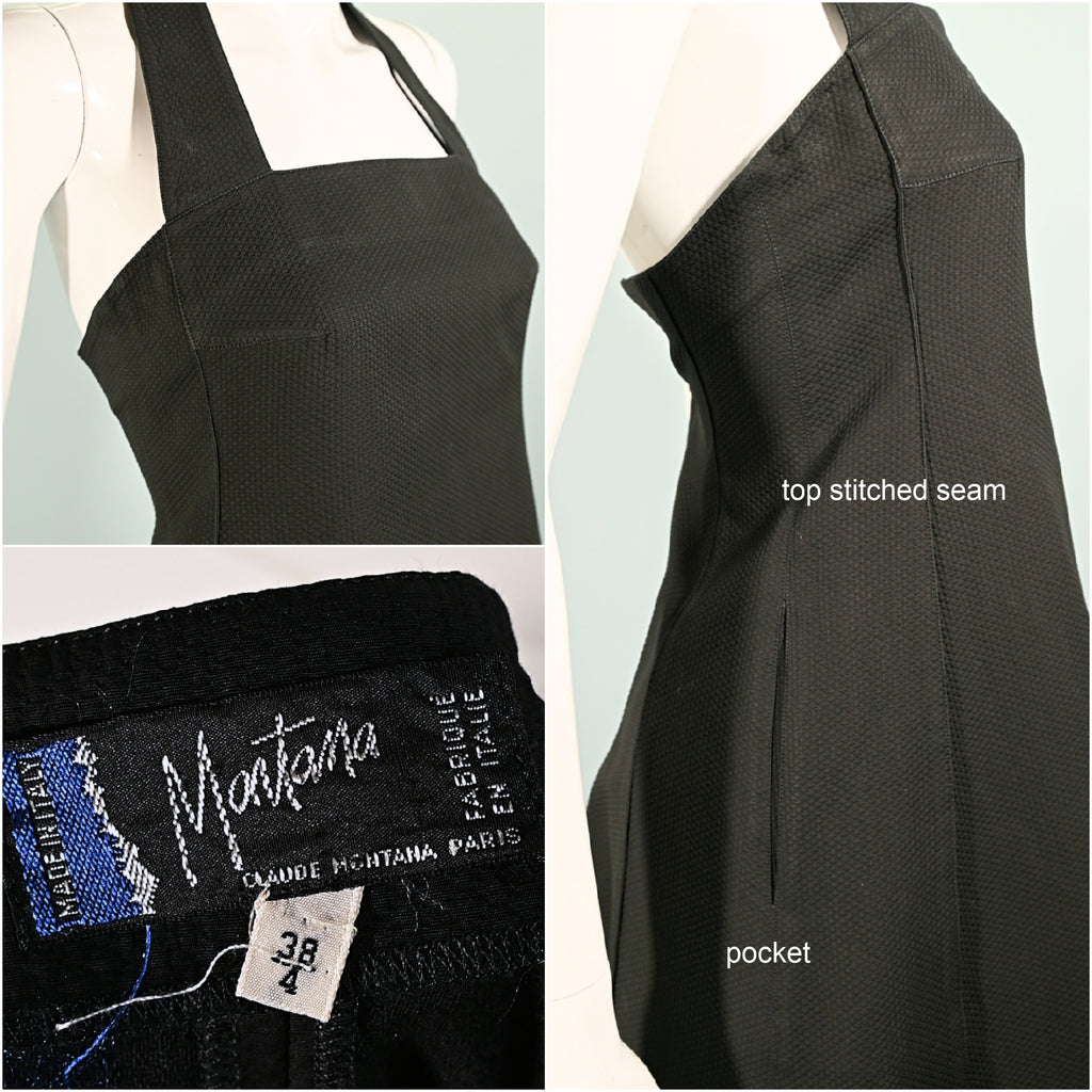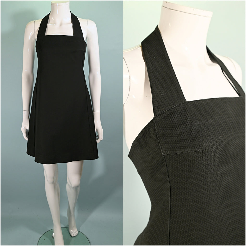 Vintage Claude Montana Black Mini Halter Dress, 'Montana' Made in Italy XS/XXS
