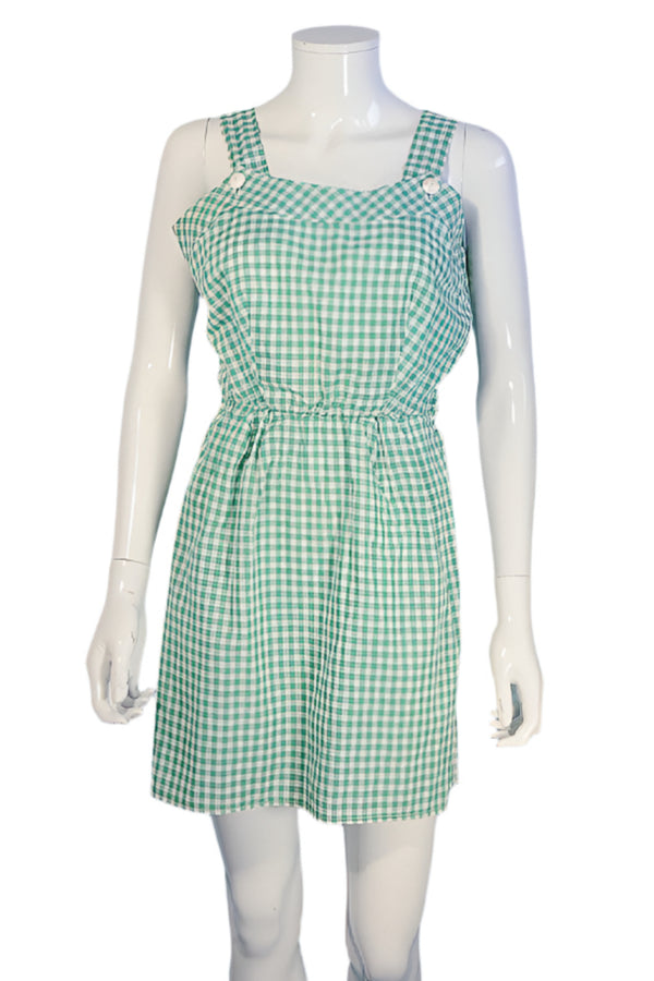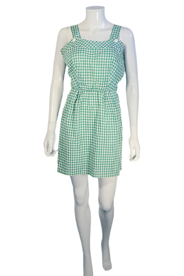 Vintage 60s Green and White Gingham Mini Day Dress, Cottagecore S
