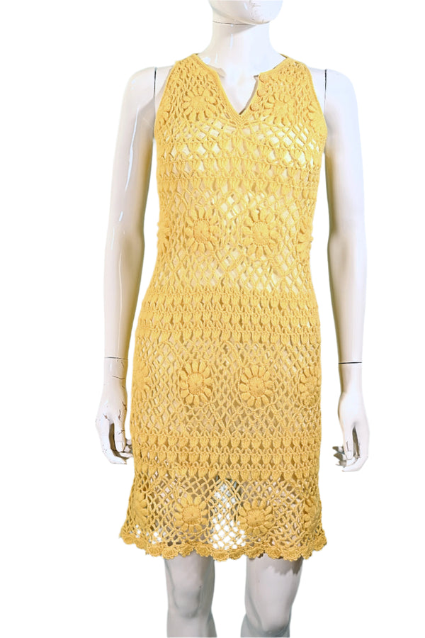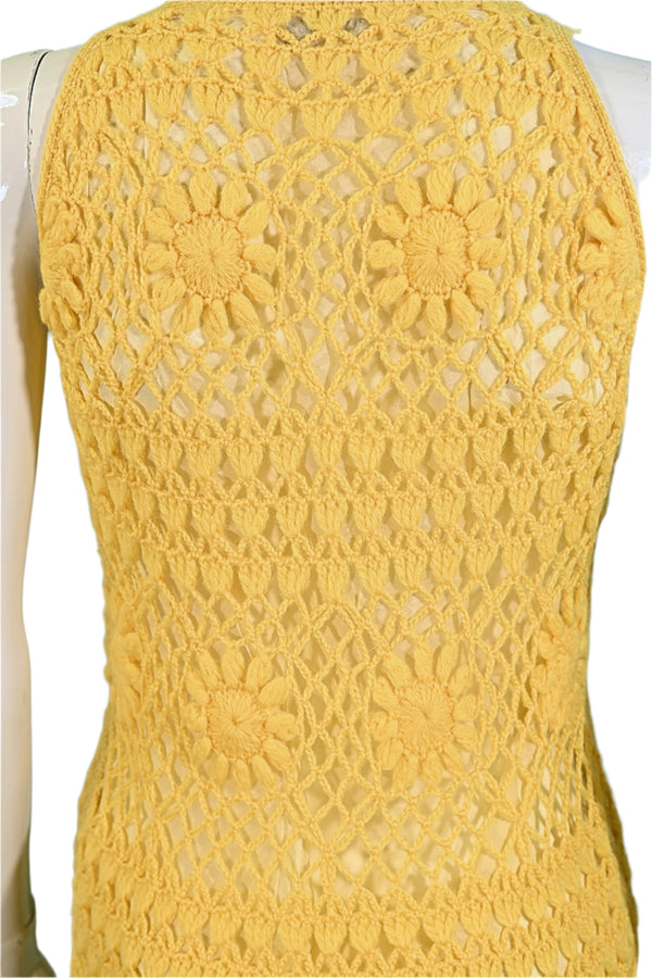Vintage 60s Yellow Crochet Mod Mini Dress XS