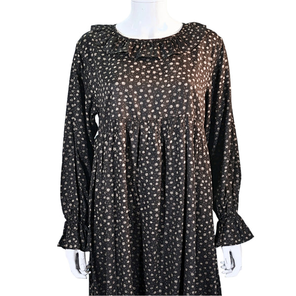 70s Gunne Sax Style Cottagecore Black Floral Prairie Dress S