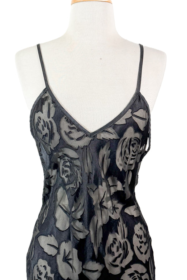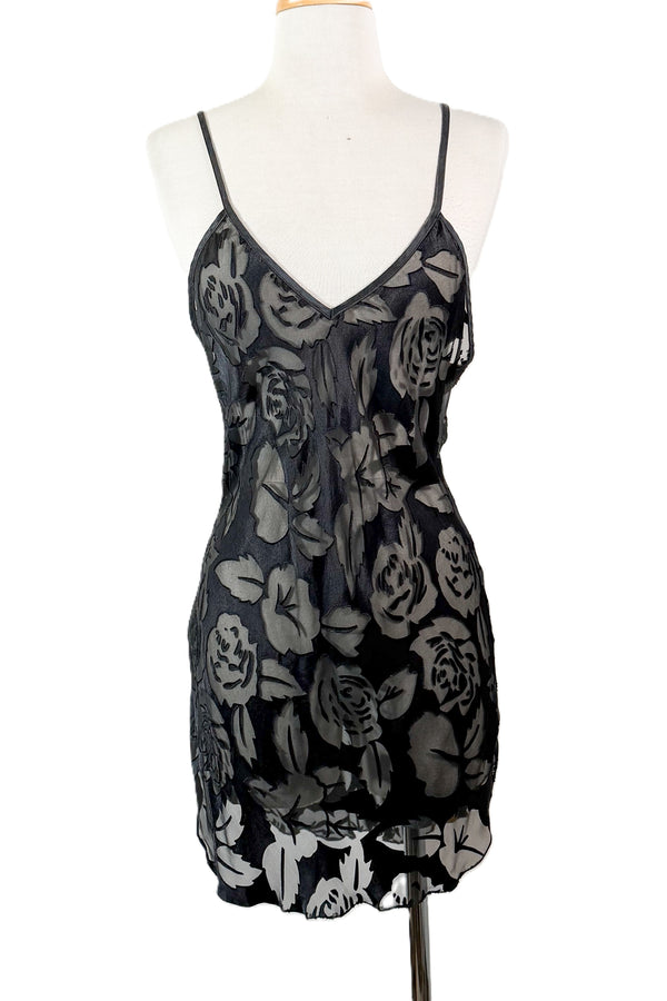 Andres Vintage Black Silk Nightgown, Burnout Semi Sheer M