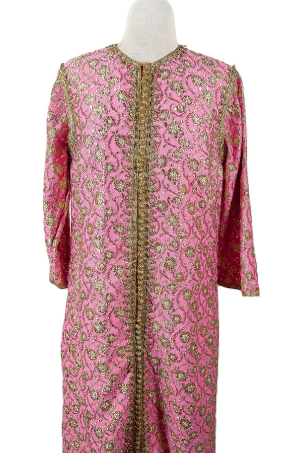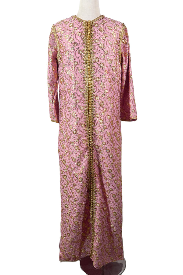 Vintage 60s Caftan Moroccan Style, Loungewear Maxi Dress, Pink Gold Caftan S/M