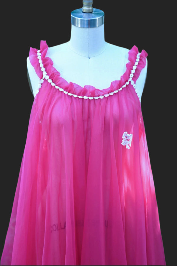Vintage Negligee Night Gown, Fuchsia Pin Up Bombshell Lingerie by Sheba SZ M