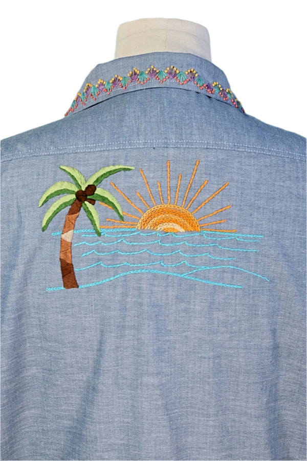 Vintage 70s Embroidered Sunshine/Dove Hippie Shirt, JC Penny Big Mac L/XL