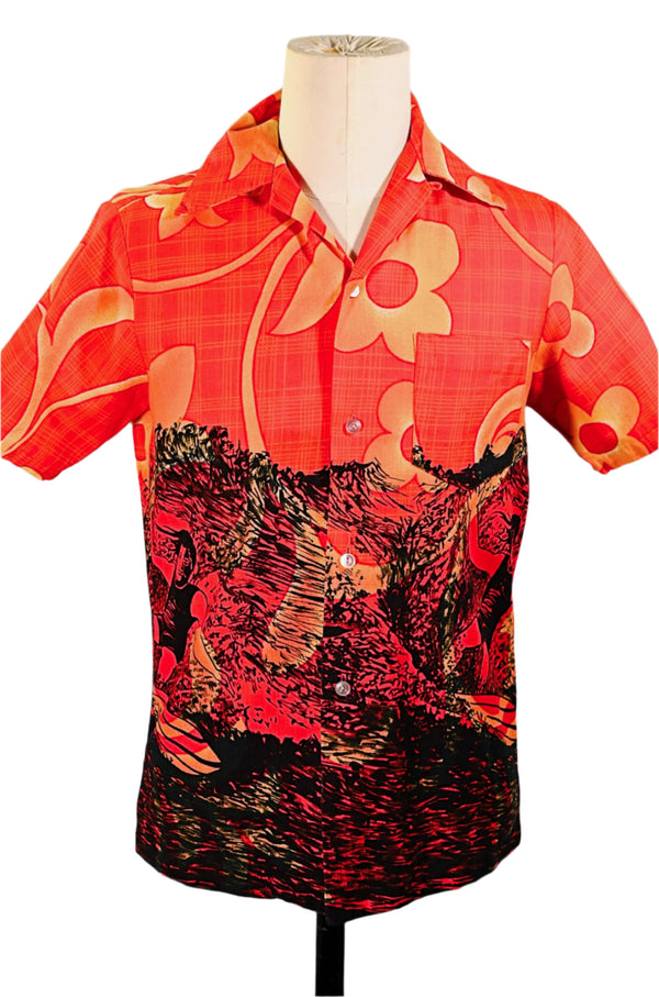 Lehua Vintage 60s/70s Hawaiian Shirt, Silhouette Surfer Shirt, Bold Lava Colors S