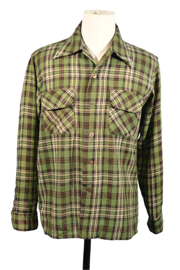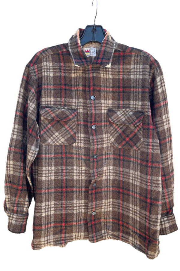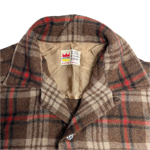 Grant-Crest Vintage 60s Brown Plaid Board Shirt, Wool/Nylon M