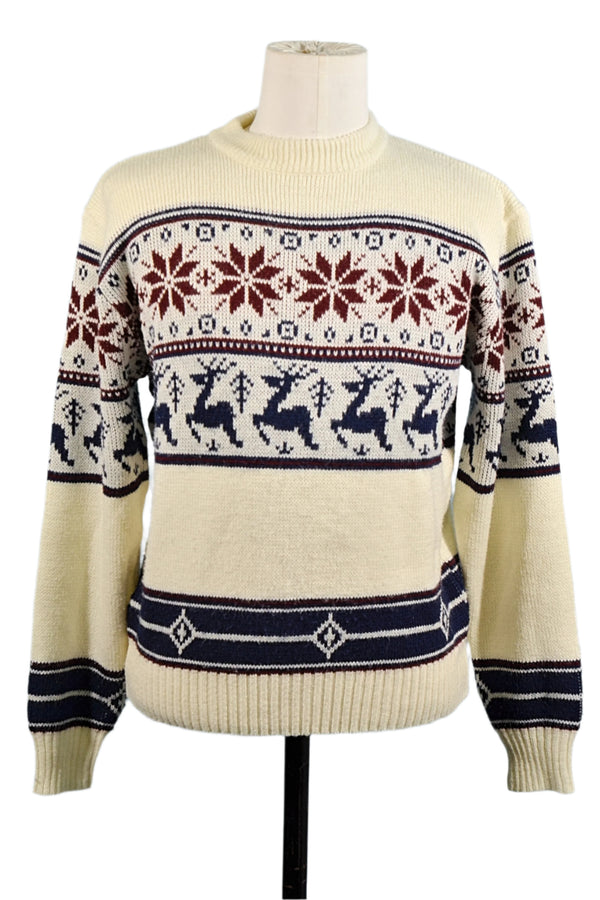 Vintage 70s Deer/Snowflake Nordic Scandinavian Sweater, Acrylic Pullover M